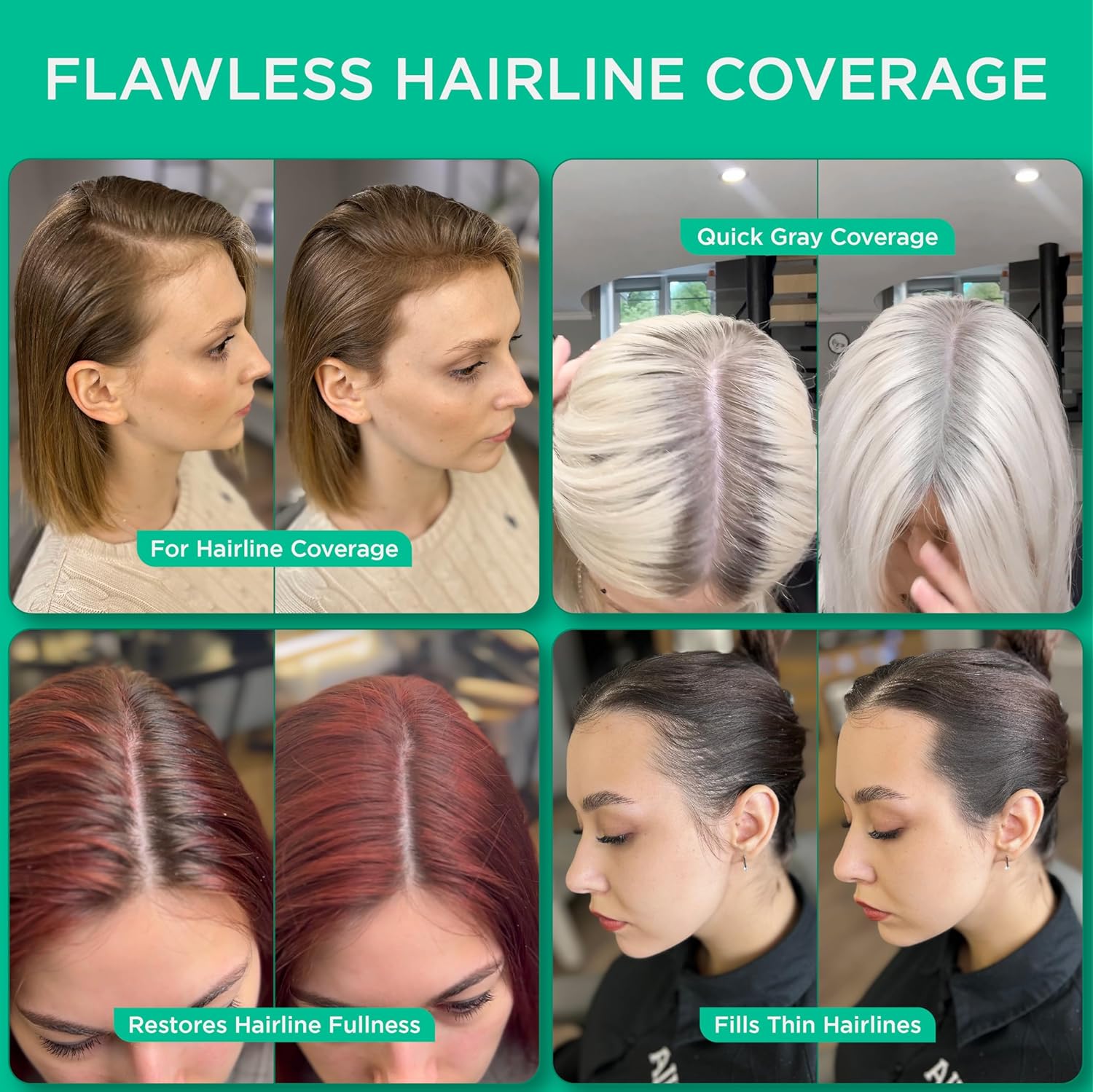 - Product Benefits : our temporary root touch-up powder, designed to conceal roots effortlessly. This innovative formula blends seamlessly with your natural hair color, providing instant coverage for grays and regrowth. The product comes with a convenient brush and sponge for easy application, allowing you to achieve a flawless finish in just minutes.n our temporary root touch-up powder, designed to conceal roots effortlessly. This innovative formula blends seamlessly with your natural hair color, providing instant coverage for grays and regrowth. The product comes wit… See more