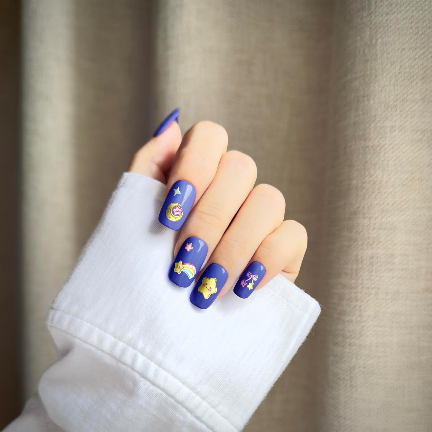 - GLOW-IN-THE-DARK: Shine a bright light on the nail decals for five minutes and marvel as they emit a gentle glow, adding a touch of enchantment to your evenings.