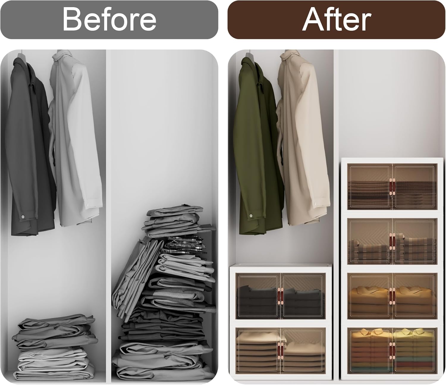 - [Foldable & Translucent] The foldable design provides more convenience. When you're not using these storage bins, you can fold them up and store them, saving more space. The translucent design of the storage box makes it easy to identify the contents of the storage box without opening it