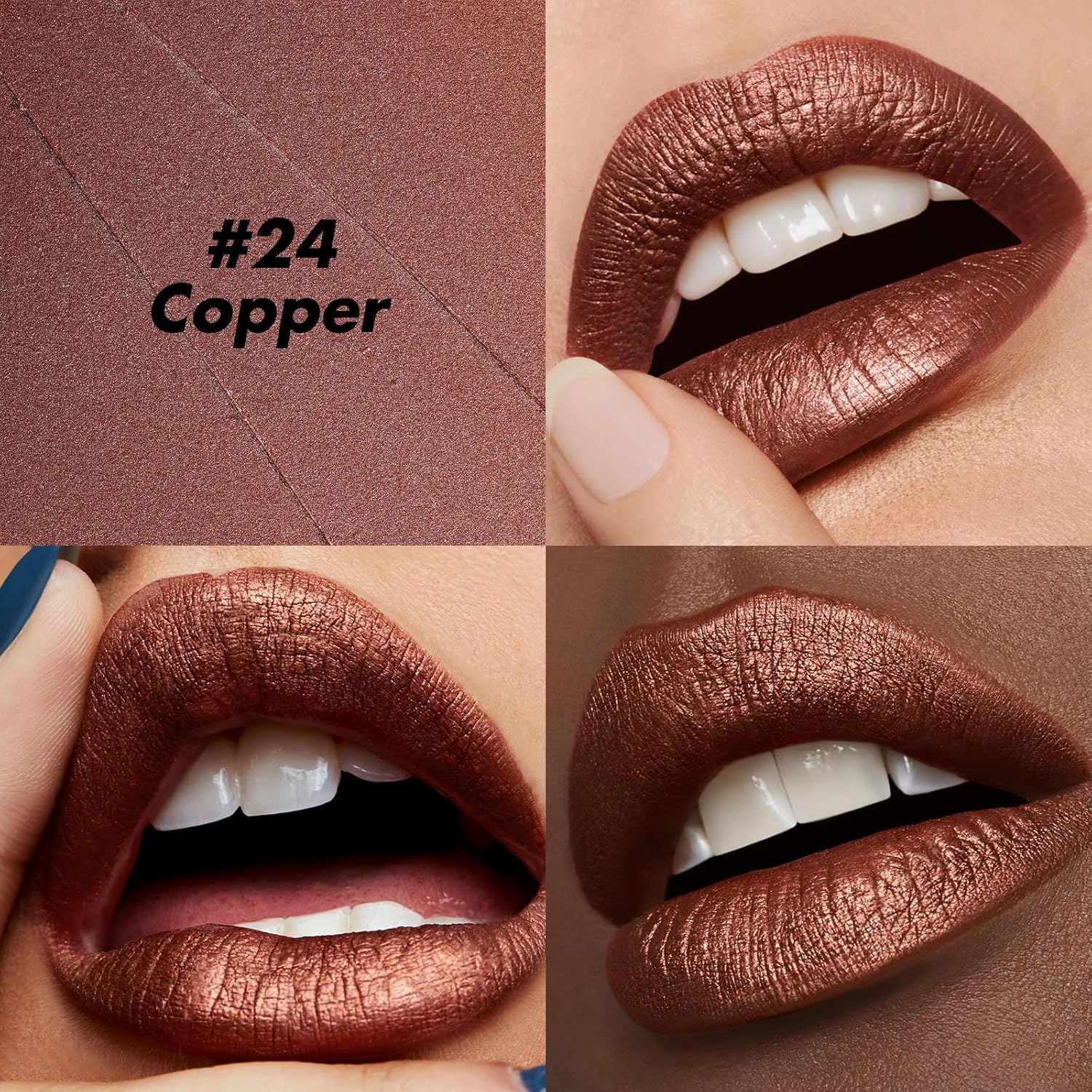 FOCALLURE Ultra Chic Metallic Lipstick,Rich Vitamin E Lip Crayon,Lightweight Shinning Color without Drying or Fading,Long Lasting Lips Makeup,#24 Copper