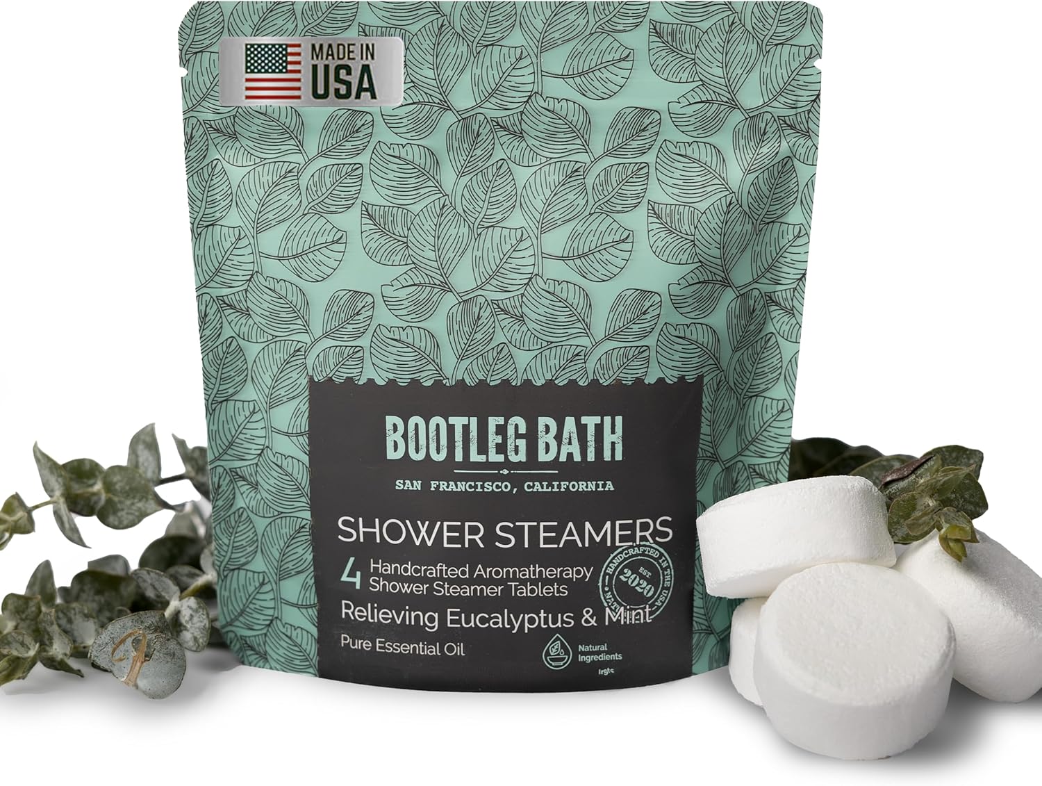 Shower Steamers Aromatherapy Eucalyptus and Mint 4 Pack, 100% Pure Essential Oil, All Natural, for Men and Women, Made in USA
