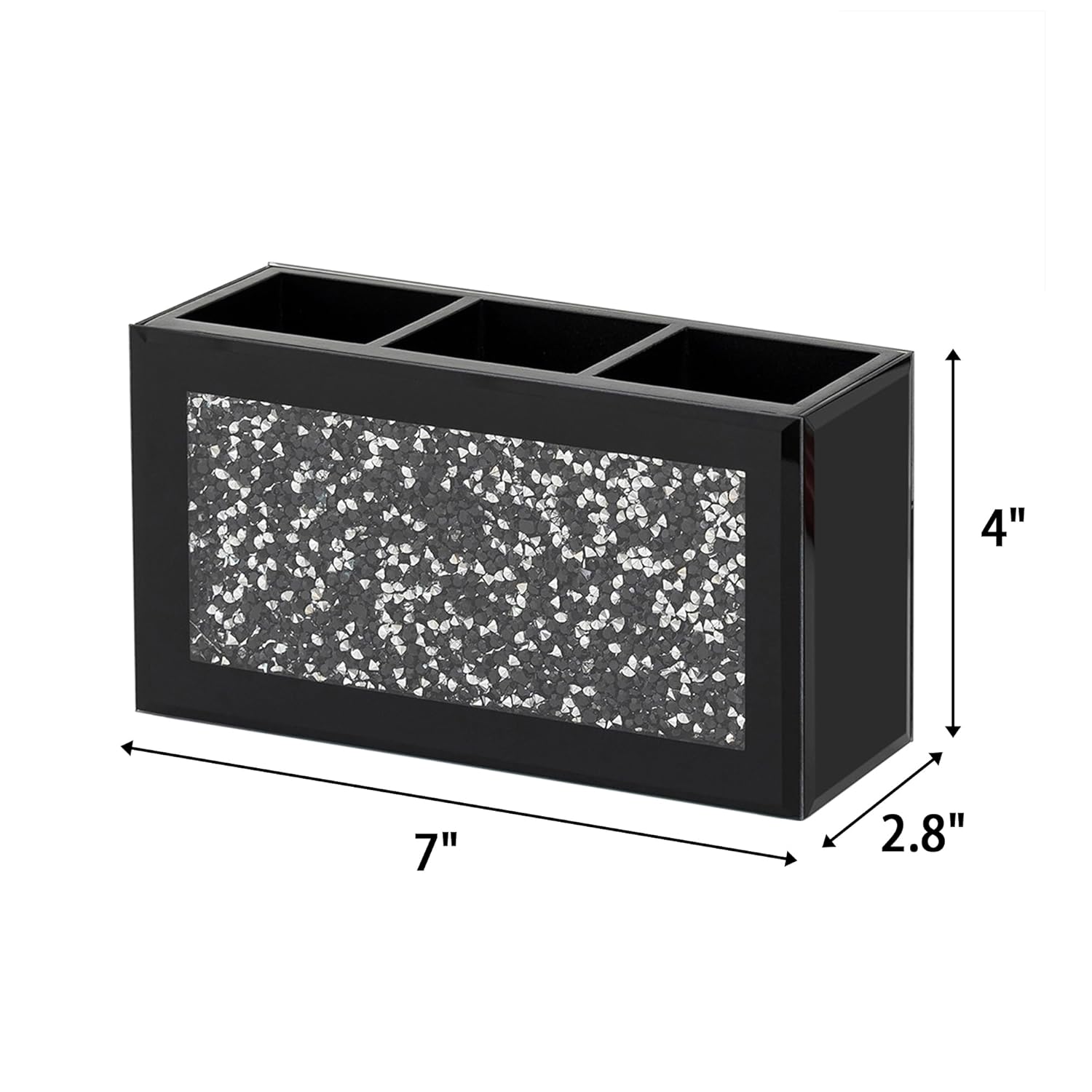 SHYFOY Black Makeup Brush Holder Organizer, 3 Slots Glass Cosmetic Brushes Storage Holder with Crushed Diamond, Pencil Pen Holder for Desk, Desk Organizer and Accessories for Vanity