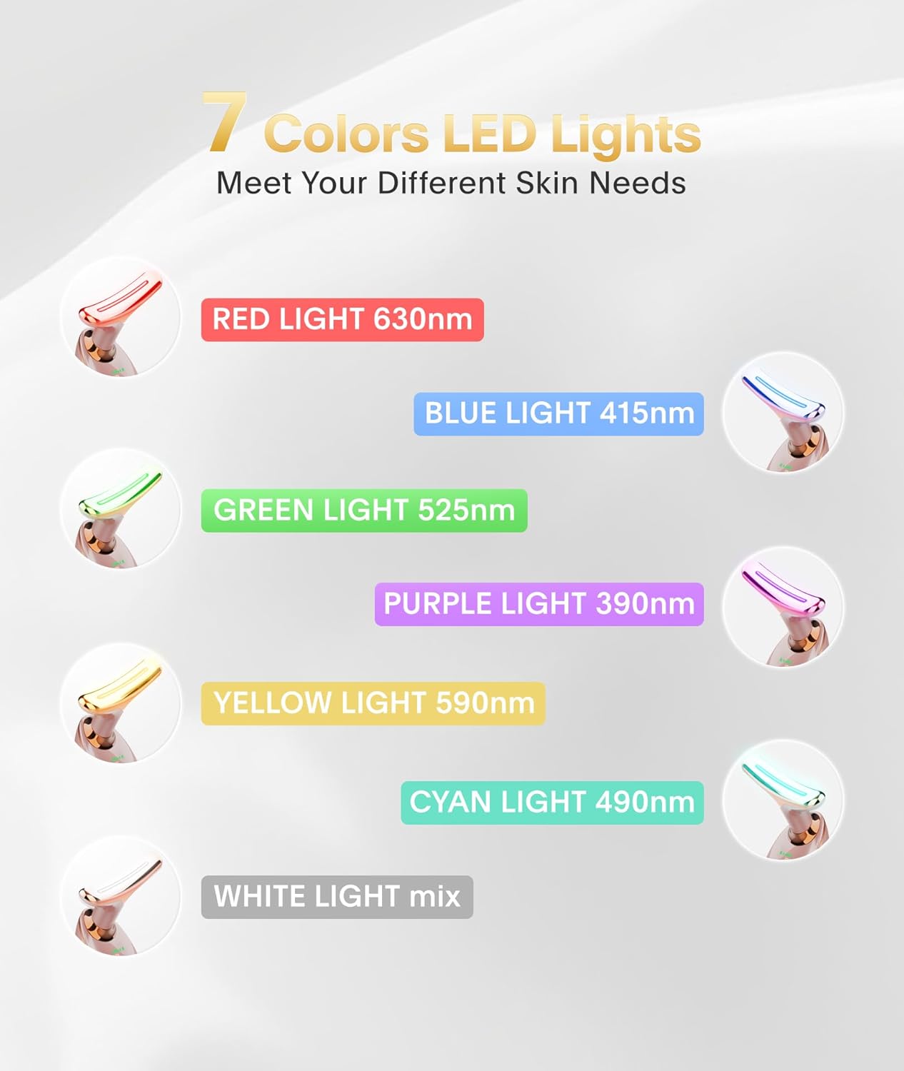 • How to Use: It is recommended to use it once or twice a day for five to ten minutes each. Cleanse the face and apply some skincare products before use. Remove the cap, long press the button to power on and select the mode you need