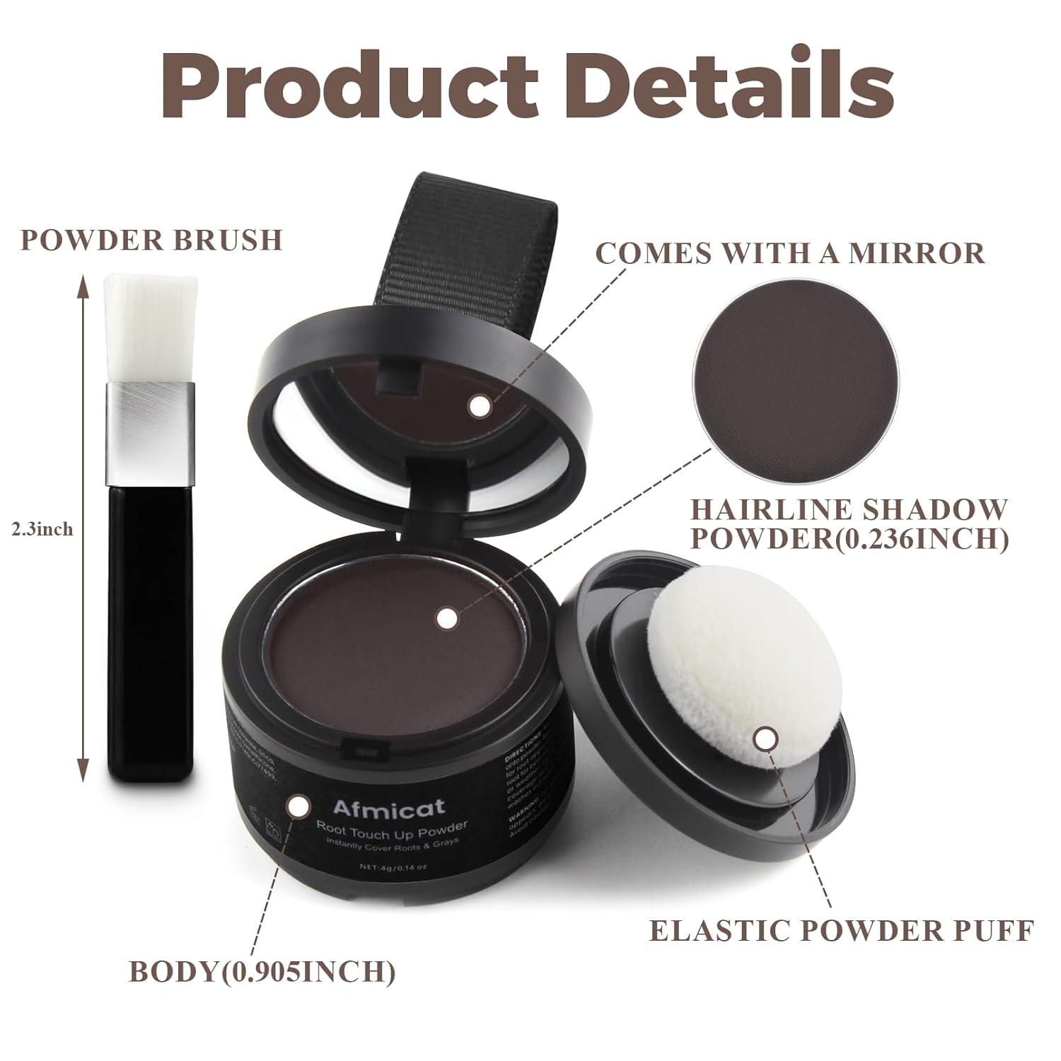 - ROOT COVER UP POWDER: This root touch up powder seamlessly blends with your natural hair color, creating a natural-looking finish that covers roots, bald spots, and thinning hair areas.Say goodbye to thinning hair root regrowth and hairline blemishes with our root cover up powder.