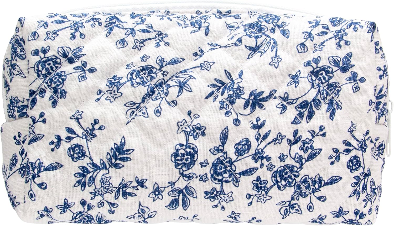 PAZIMIIK Vintage Quilted Makeup Bag Cosmetic Pouch for Brushes Pencils and Travel Make Up Accessories for Women and Girls Jouy Blue