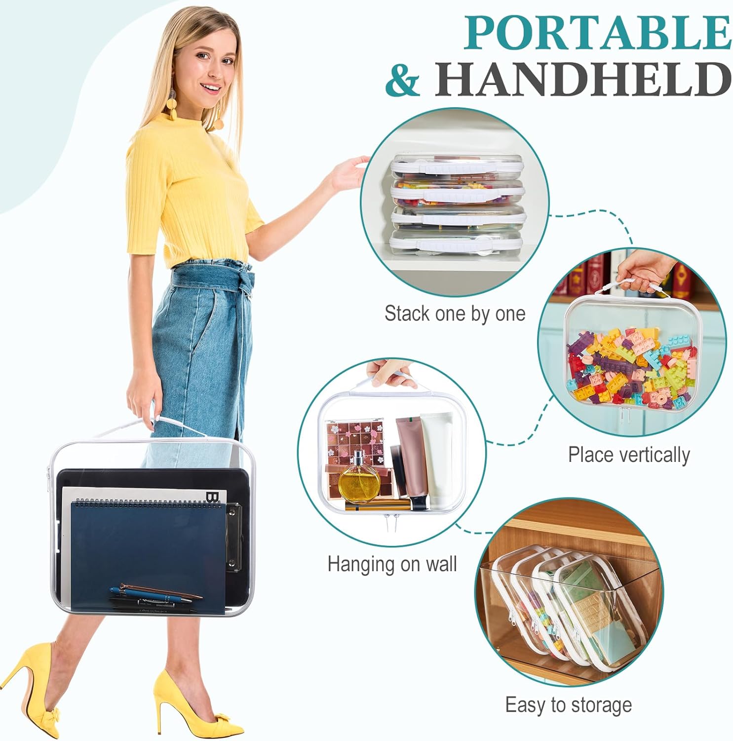 - Ample Storage Capacity: this set includes 4 clear hard zippered pouches, providing plenty of room to store and organize a wide range of items; Each pouch features sturdy handles for easy access and transport, ensuring your belongings remain neat and readily available whenever you need them