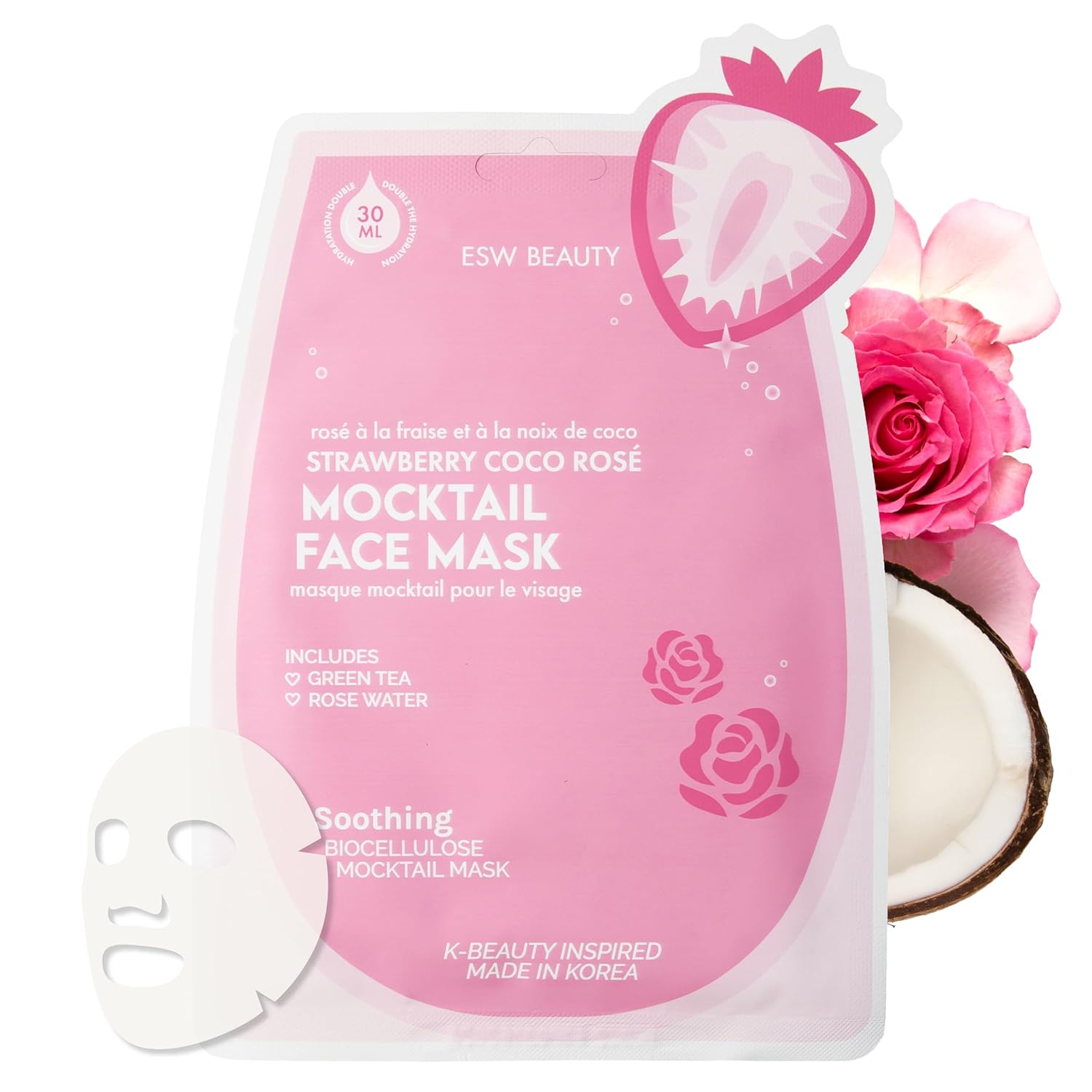 ESW Beauty Strawberry Coco Rosé Soothing Face Mask - Hydrating, Calming, Vegan Face Mask with Coconut Water, Green Tea, & Strawberry Extract for Sensitive Skin