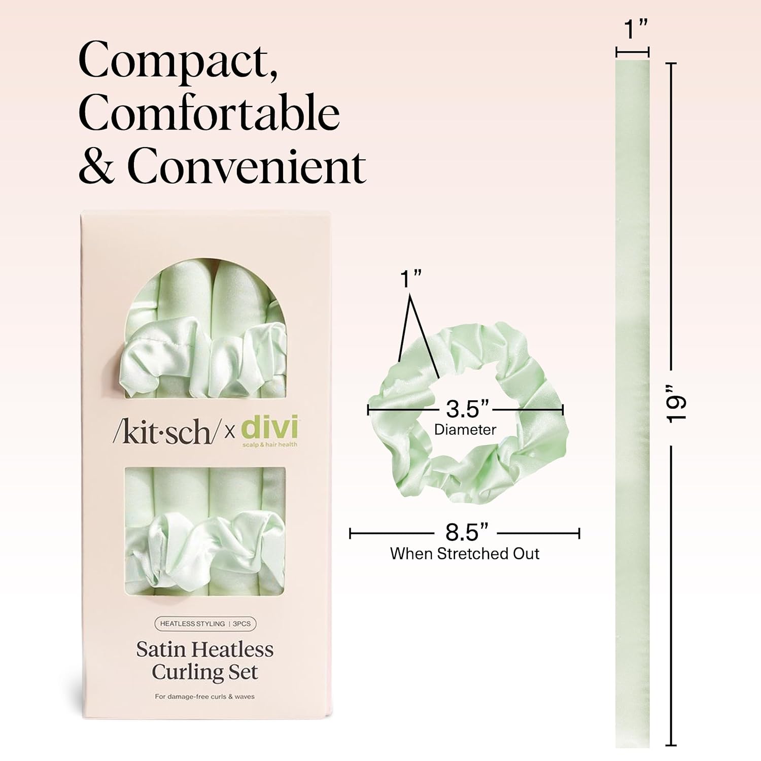 Divi x Kitsch Satin Heatless Hair Curler Set - Heatless Curls Overnight, Hair Rollers for Soft Curls & Frizz-Free Styling, No Heat Curlers To Sleep in, Curling Rod Headband for Overnight Curl- Sage