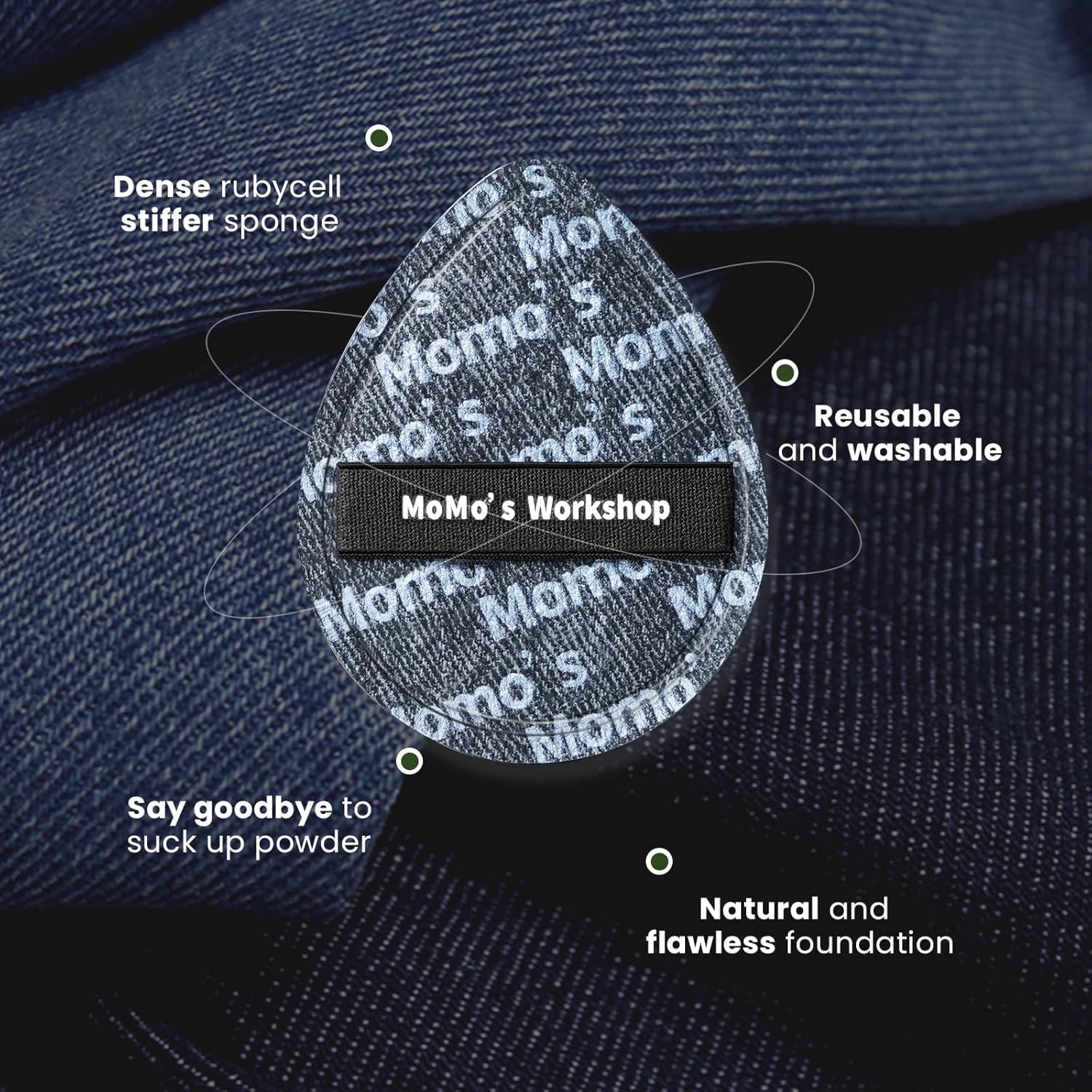 - 【Warm Tips】 Denim series due to color process, elastic band may has a little floating color, after use or cleaning, please avoid the elastic band and the puff makeup surface stacked to prevent subsequent staining. The Black Denim puff is fluffy, soft and non-absorbent, restoring the coverage of your foundation and aiding in the creation of a flawless, porcelain beauty finish.