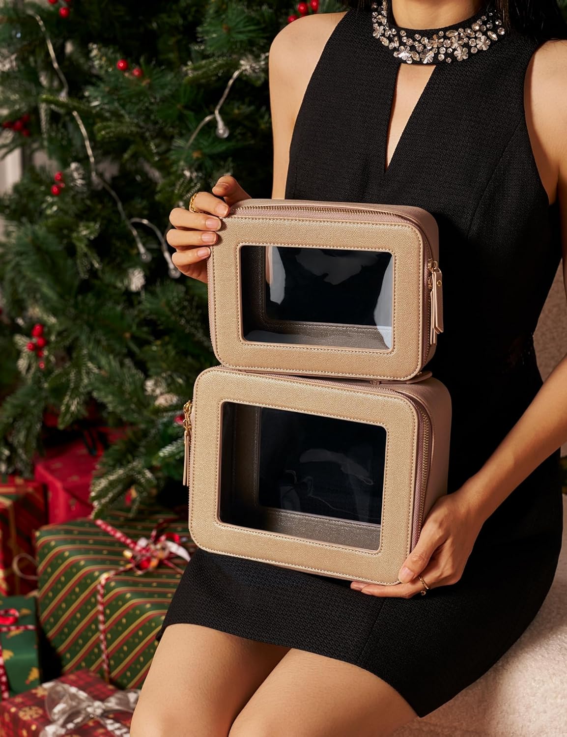 - [Premium Material and Durability] – The clear cosmetic case, both the exterior and interior, is crafted from high-grade diamond-pattern faux leather, which is highly scratch resistant, durable and exceptionally easy to keep clean. It features a smooth zipper for secure closure, and elegant light gold metal hardware accents, adding a luxurious and sophisticated touch to the bag's overall design.