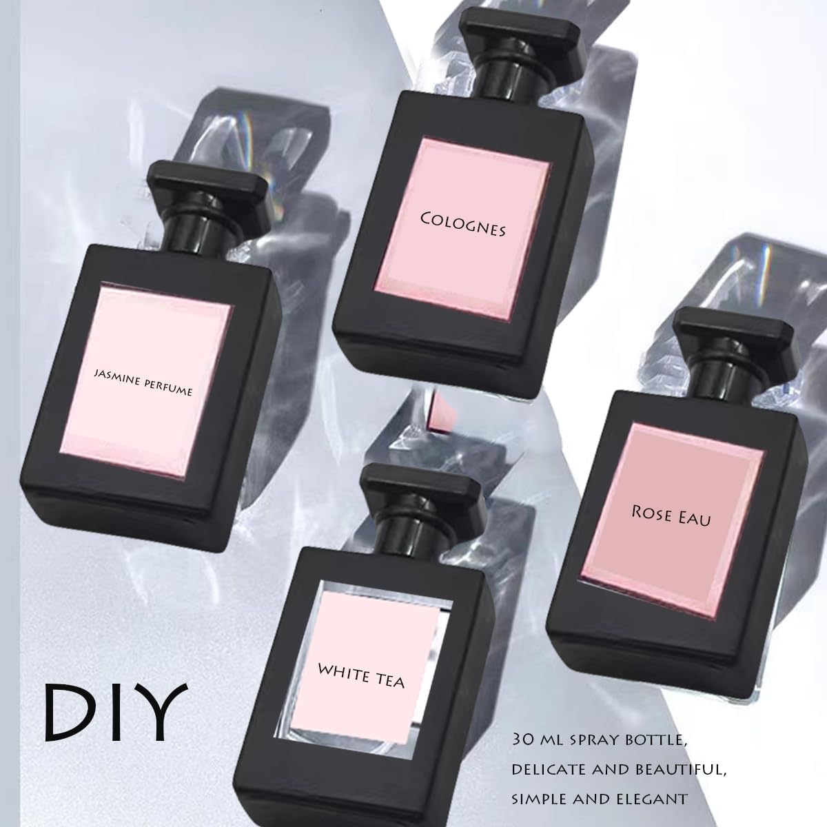 - Perfume Spray Bottle: With a minimalist and fashionable appearance, this empty perfume bottles boasts a sparkling, highly polished spray head. It’s not only practical but also adds a touch of sophistication to your belongings.