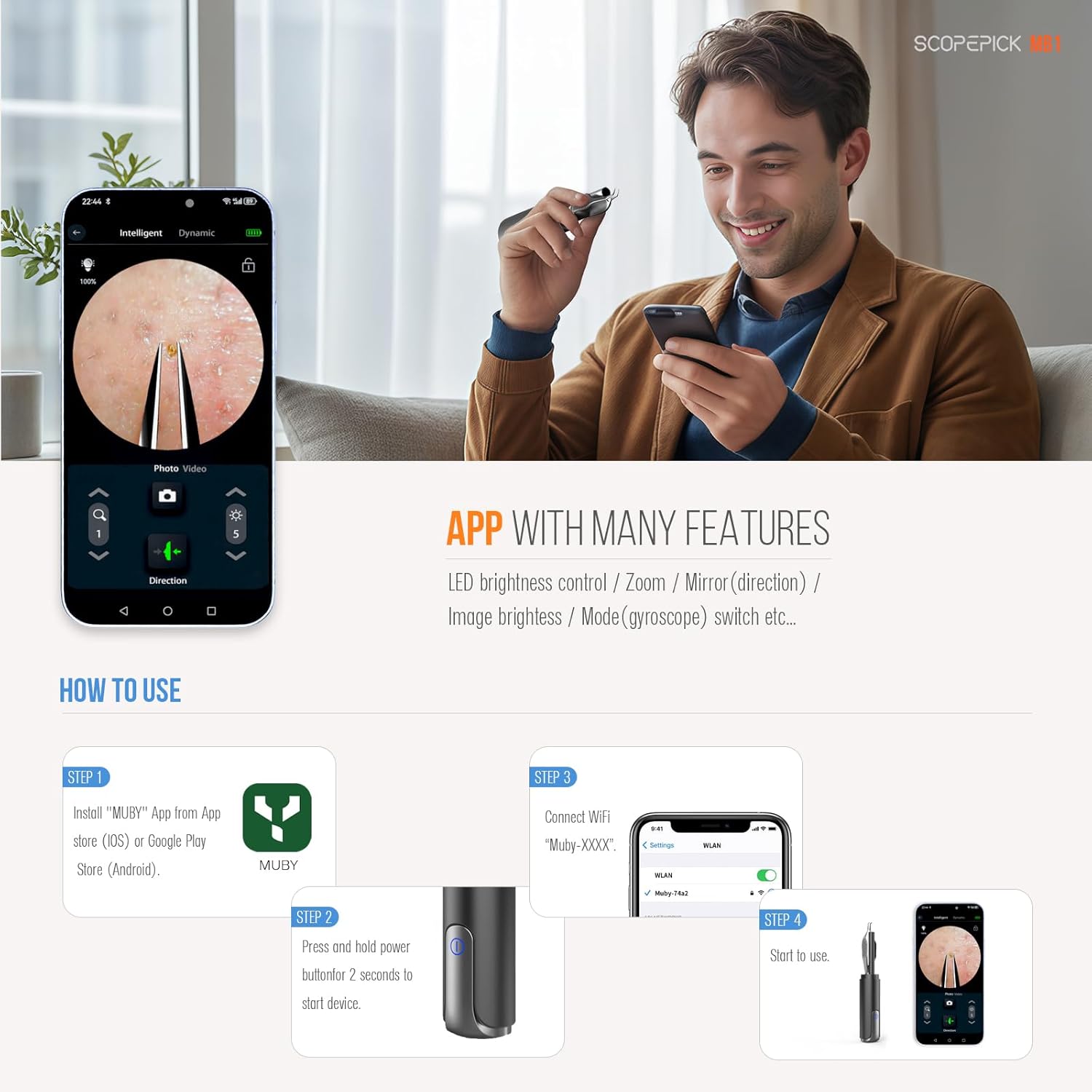 - Magnified View: The integrated camera provides a magnified, up-close view of the target area for meticulous grooming and extraction.