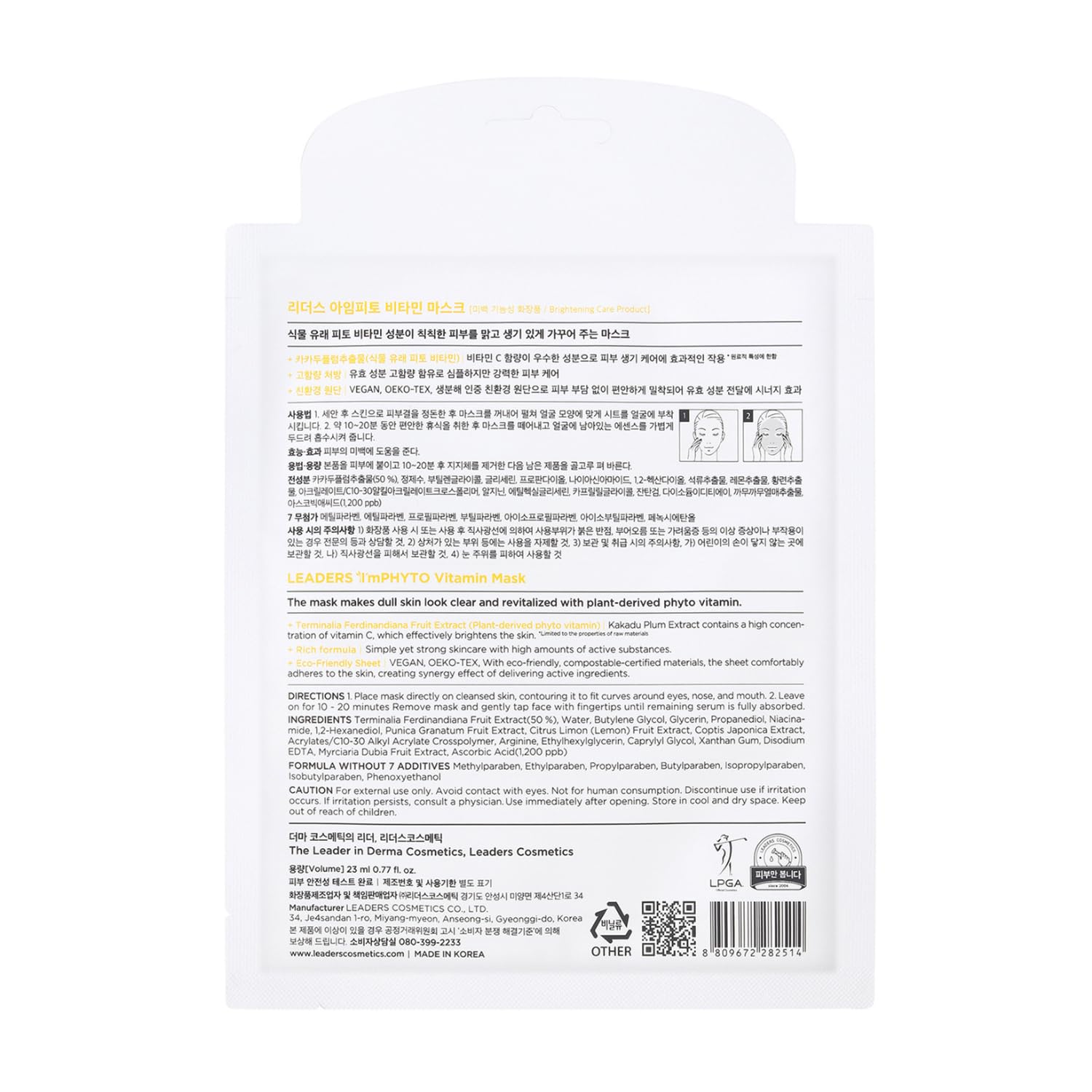 • CERTIFIED VEGAN & CRUELTY-FREE – Leaders I'M PHYTO Vitamin Mask has been officially certified by Italy's V-Label, ensuring our products are free from animal-derived ingredients and have not been tested on animals, so you can feel good about indulging in our skincare products. Ideal for individuals prioritizing ethical and sustainable beauty solutions, our Vitamin Mask delivers effective skincare results with eco-friendly practices. Embrace the feeling of nourished skin and good conscience!
