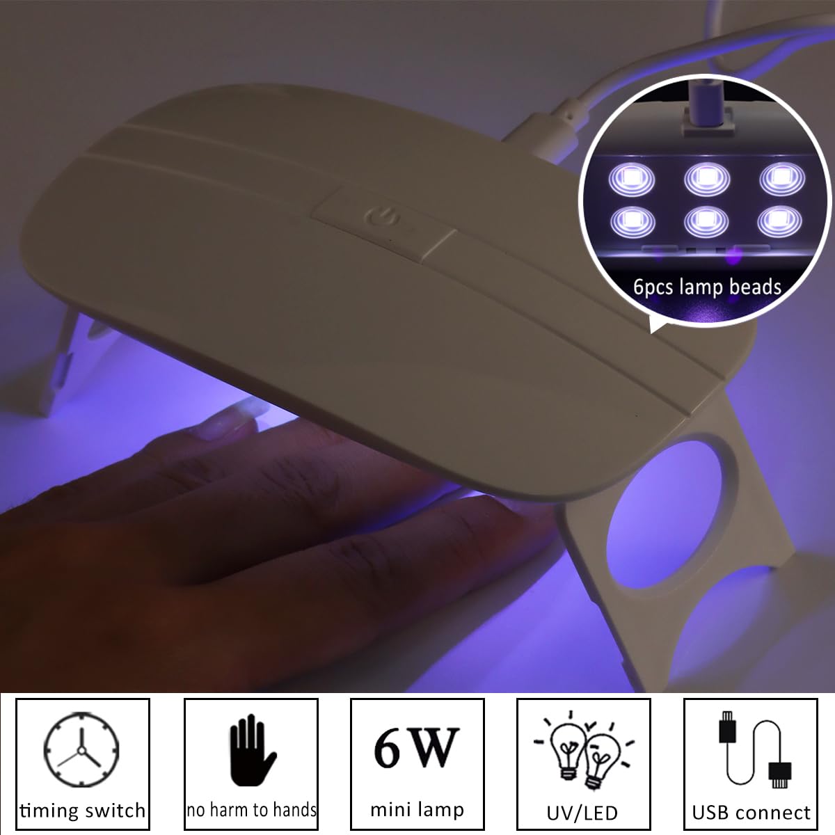 - 【Mini Nail Lamp】 A portable mini nail lamp is included in the poly gel nail kit.The nail lamp is UV/LED light and have 6 lamp beads. Easy to cure nail poly extension gel,nail gel polish,base coat and top coat,nail art glue and so on.