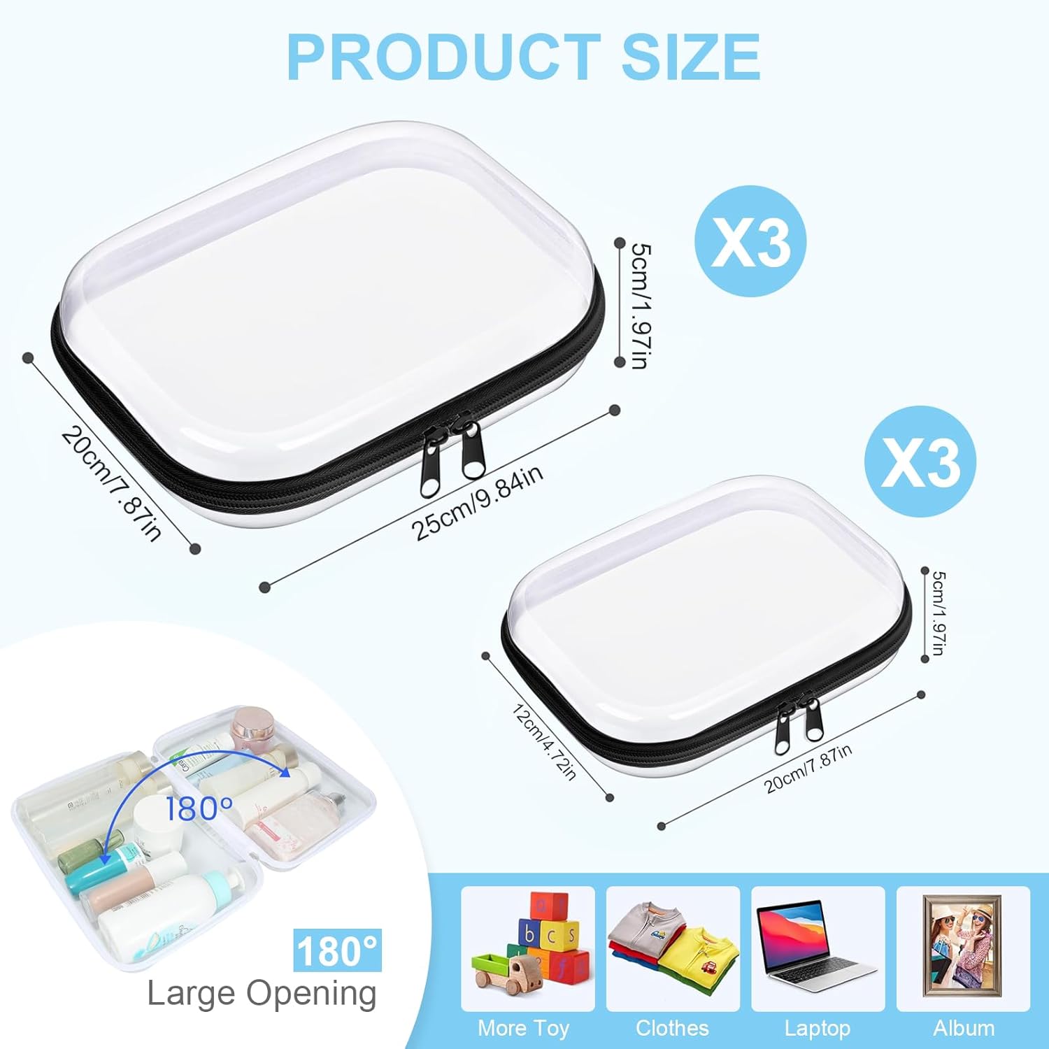 - Ample Storage Space: The package contains 6 transparent hard zipper boxes in two sizes, medium 10 x 8 x 2 inches, small 8 x 4.7 x 2 inches; you will have enough space to store and organize multiple items, keeping your items tidy.
