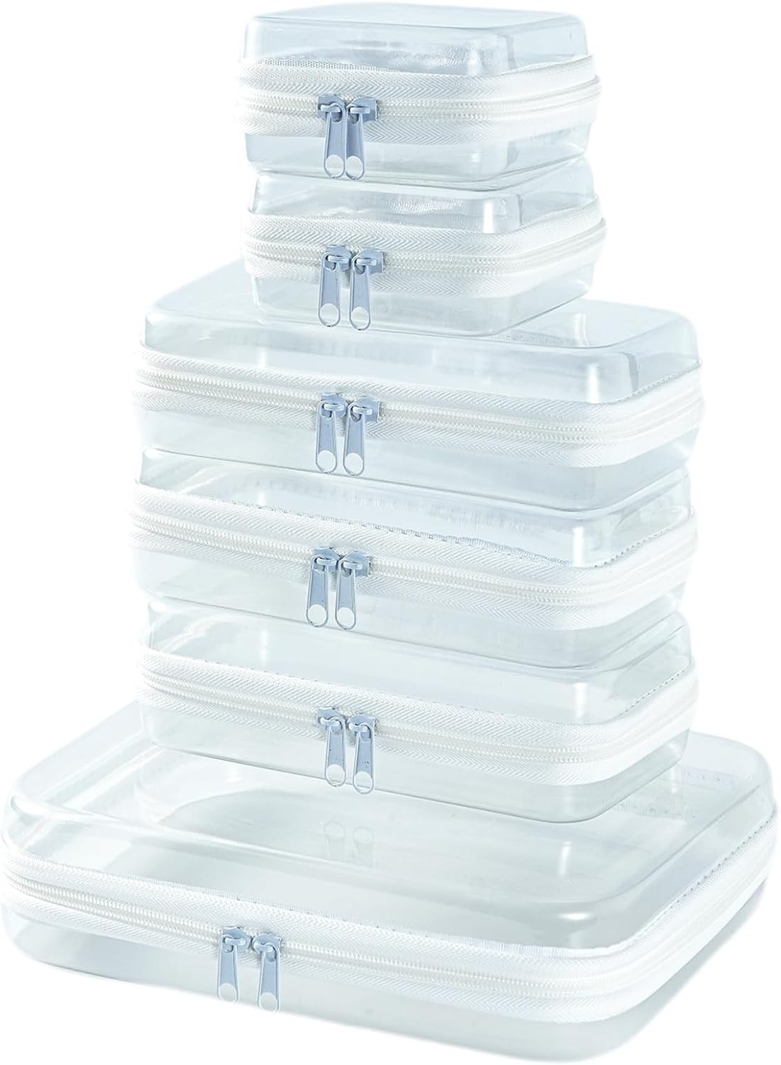 - See Everything at a Glance. Made from high-clarity transparent material, each zipper pouch lets you easily find what you need—saving time while packing, traveling, or organizing your daily carry.