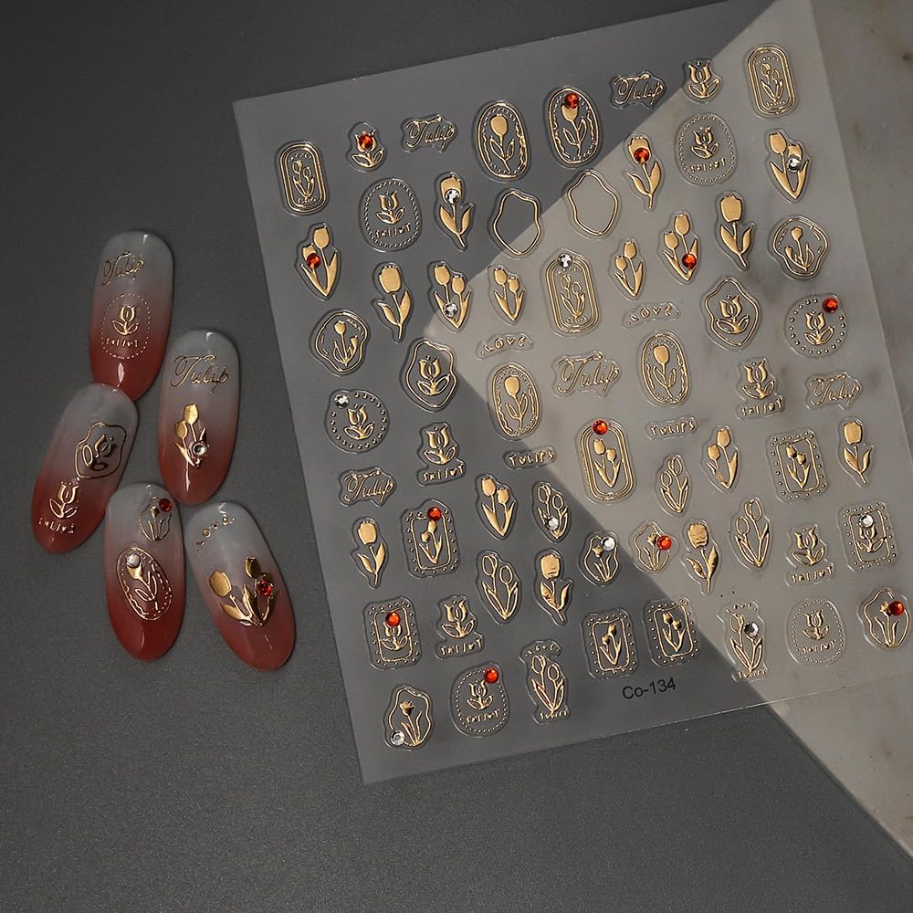 - Fashion Nail Designs:There elegant grape gold tulip shape,large number of different patterns for you to use and replace in daily life, nail decals are full of sensuality and elegance,Various charming patterns bring you a different mood
