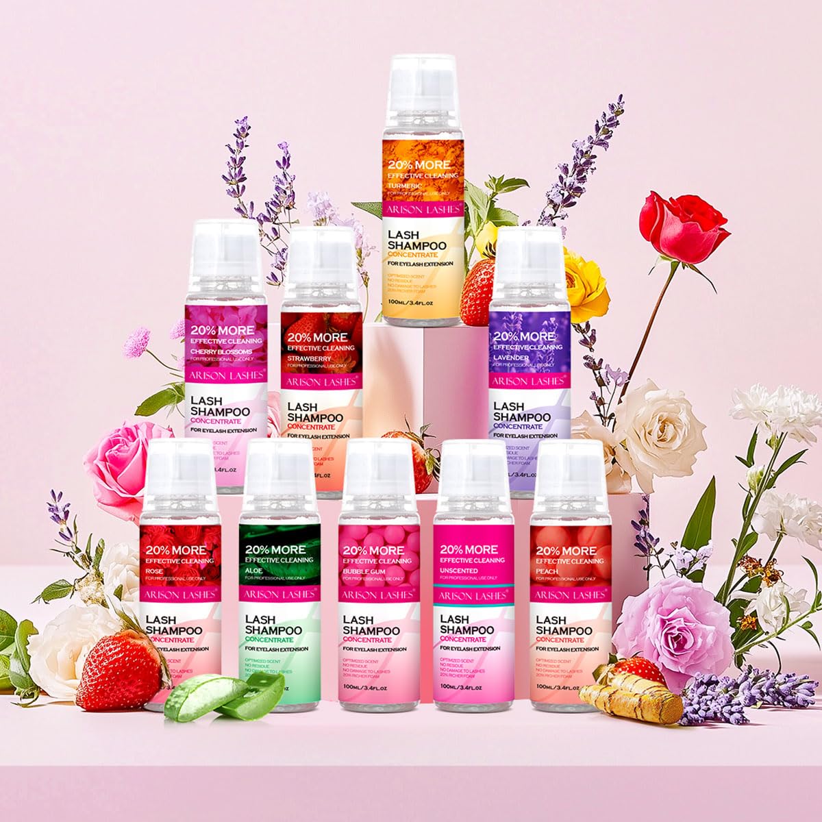 ARISON LASHES Lash Shampoo Concentrate for Lash Extensions 100ML Eyelash Cleanser Concentrate Oil-Free Eyelash Extension Shampoo with Salon Home Care(Strawberry)