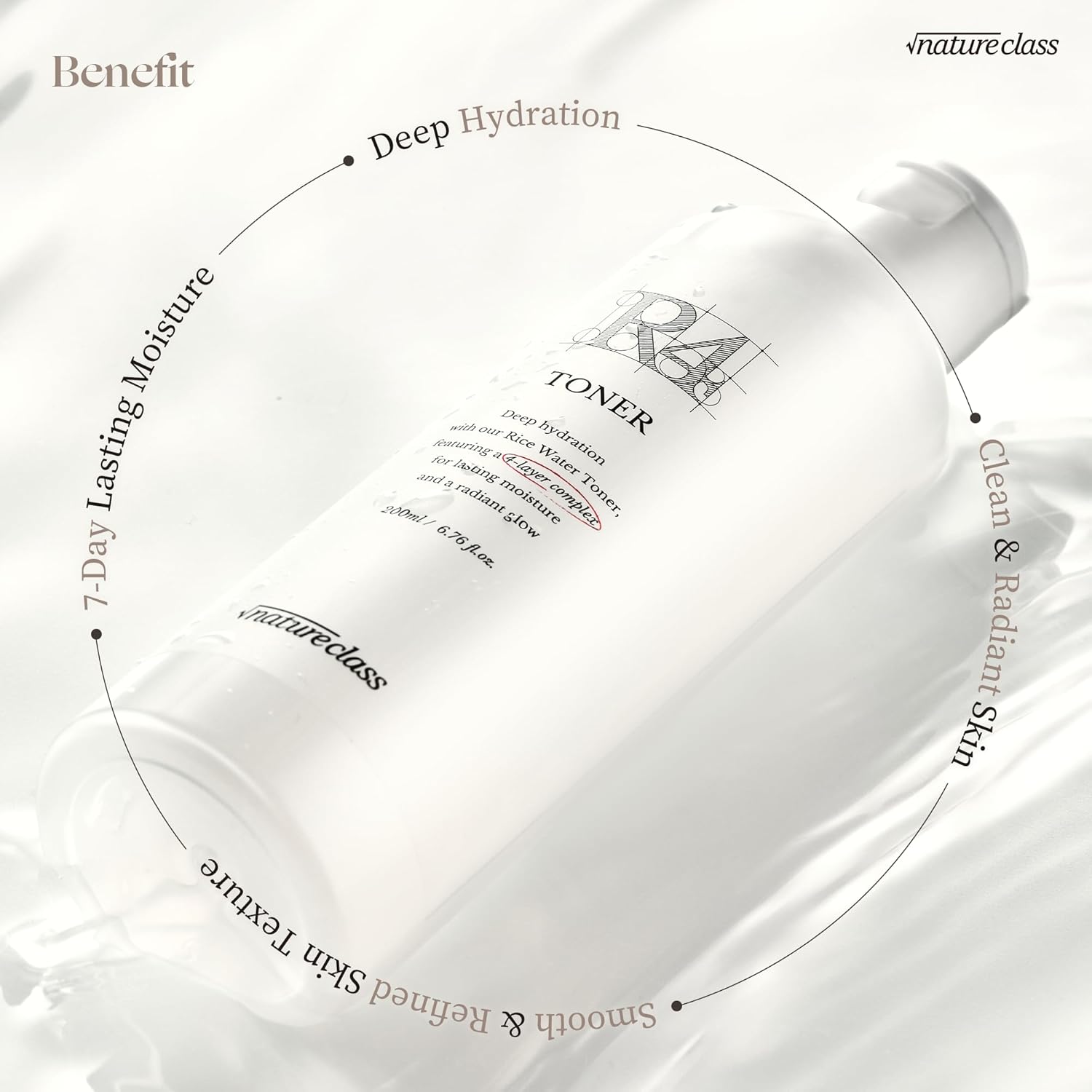 R4 Hydrating Rice Toner with Rice-Peptide & 4-Liposome Complex – Calming & Moisturizing Glowing Toner, Lasting Hydration, Hypoallergenic Korean Skincare 6.76 fl.oz.