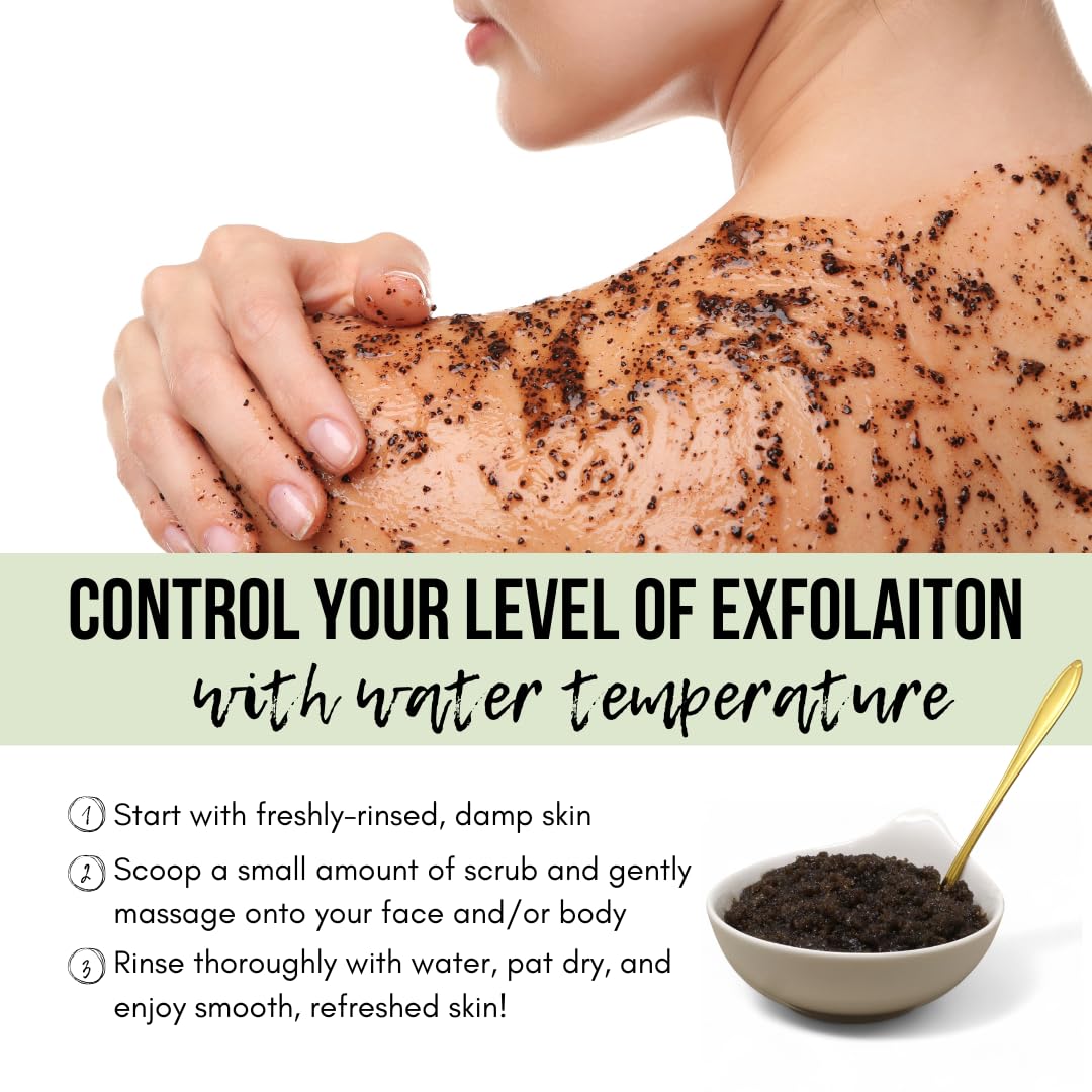 - All-in-One Exfoliator: Works as a body scrub, facial scrub, hand scrub, and foot scrub to exfoliate and moisturize while removing toxins and dead skin cells.