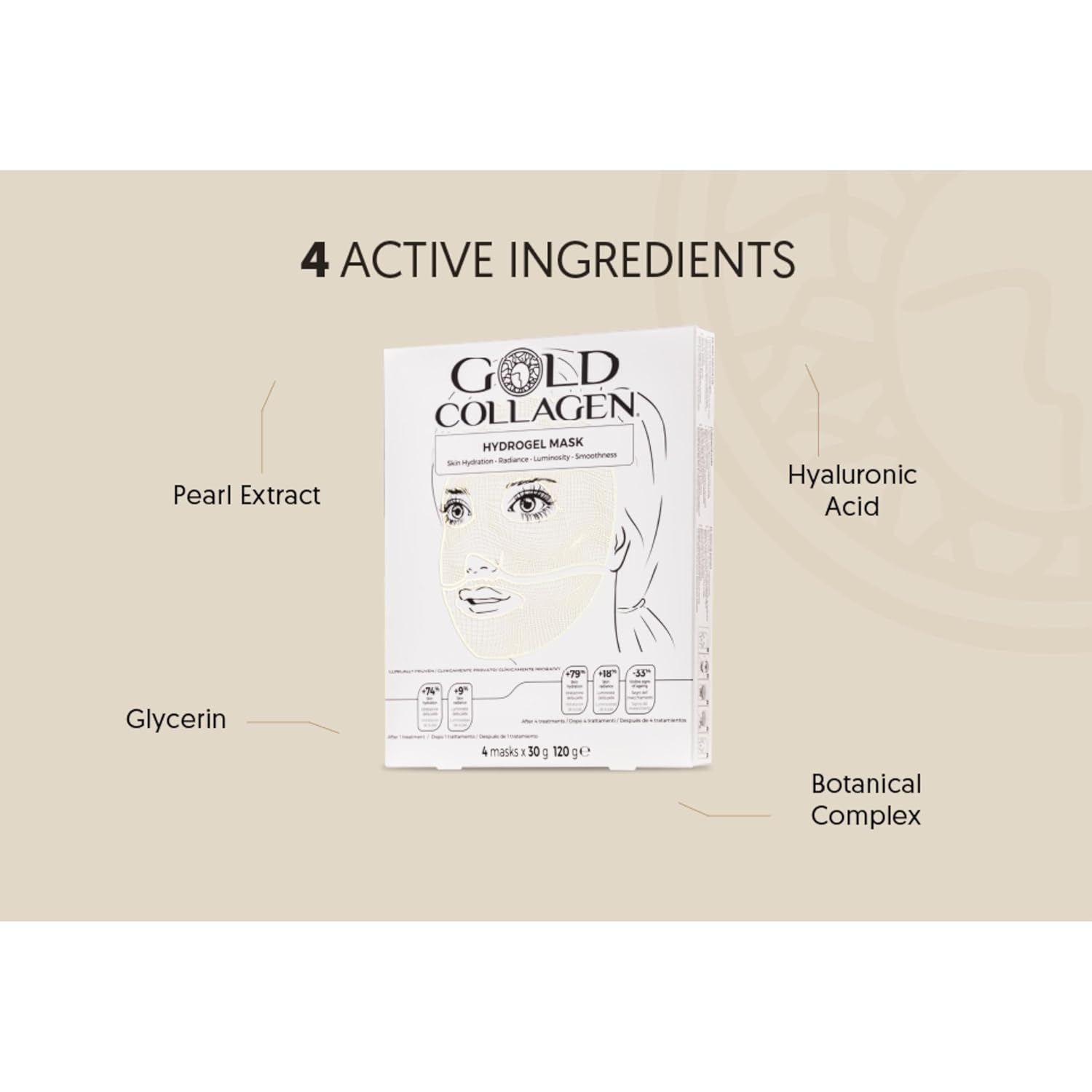 - HYDROGEL MASK SET FOR A GLOW LOOK: Dry, thirsty skin? Solved with Moisture powerhouse ingredients . Gold Collagen Hydrogel Mask has been developed for dehydrated, tired-looking skin. Made in South Korea, the unique water soluble bio-matrix mask encapsulates an advanced formula of regenerating ingredients