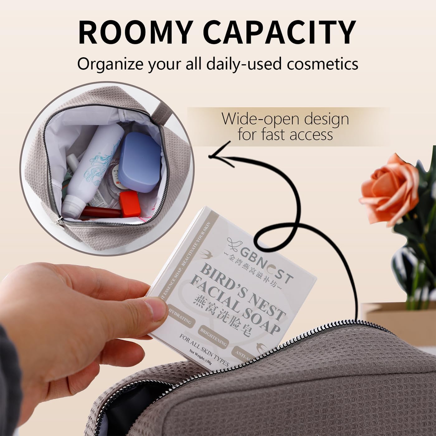 - 【Premium Waffle Fabric for Durability 】: Crafted from high-quality waffle fabric, this custom makeup bag is not only soft and lightweight but also highly durable. The textured material is easy to clean and resistant to wear and tear, making it a practical and long-lasting choice for personalized makeup bags for women.