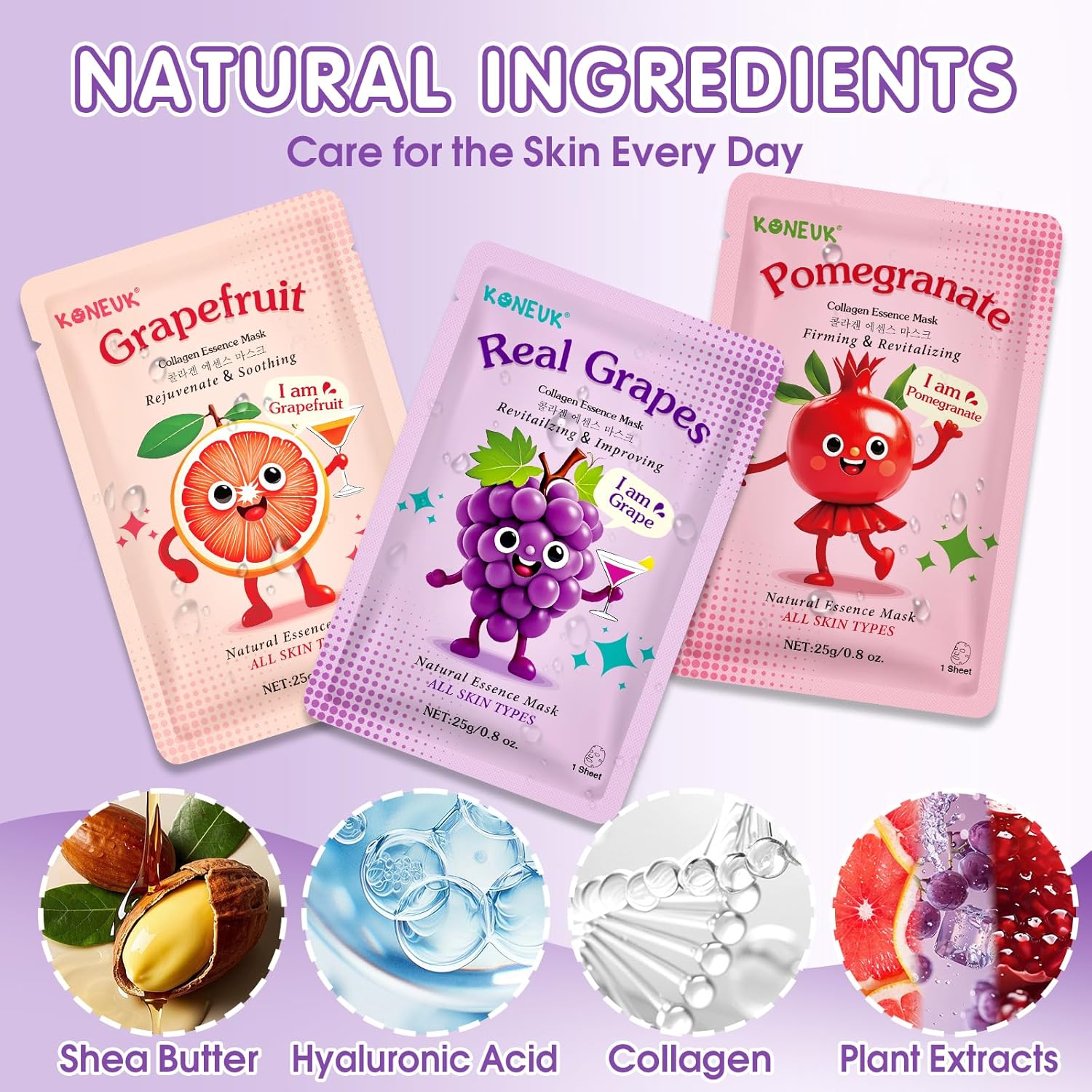- 【Suitable for All Skin Types】Various facial masks are specifically designed for different skin problems,whether your skin is dry,oily or sensitive,our face masks skincare can easily solve the problem.Skin friendly cotton sheet,with fruit ingredients,mild and non irritating,and have a faint fruity fragrance