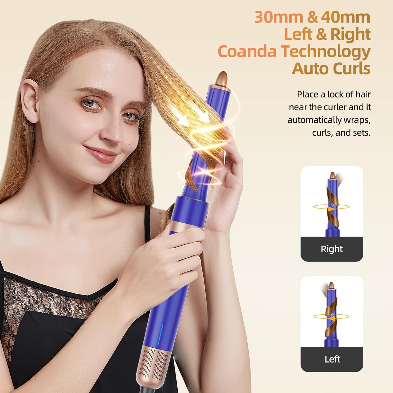 - Professional Air Automatic Wrap Curler: This hair styler wand in Left/Right directions - using Coanda technology to automatically wrap and curl your hair, you can create Natural, Voluminous Curls in different directions, providing salon-quality results at home
