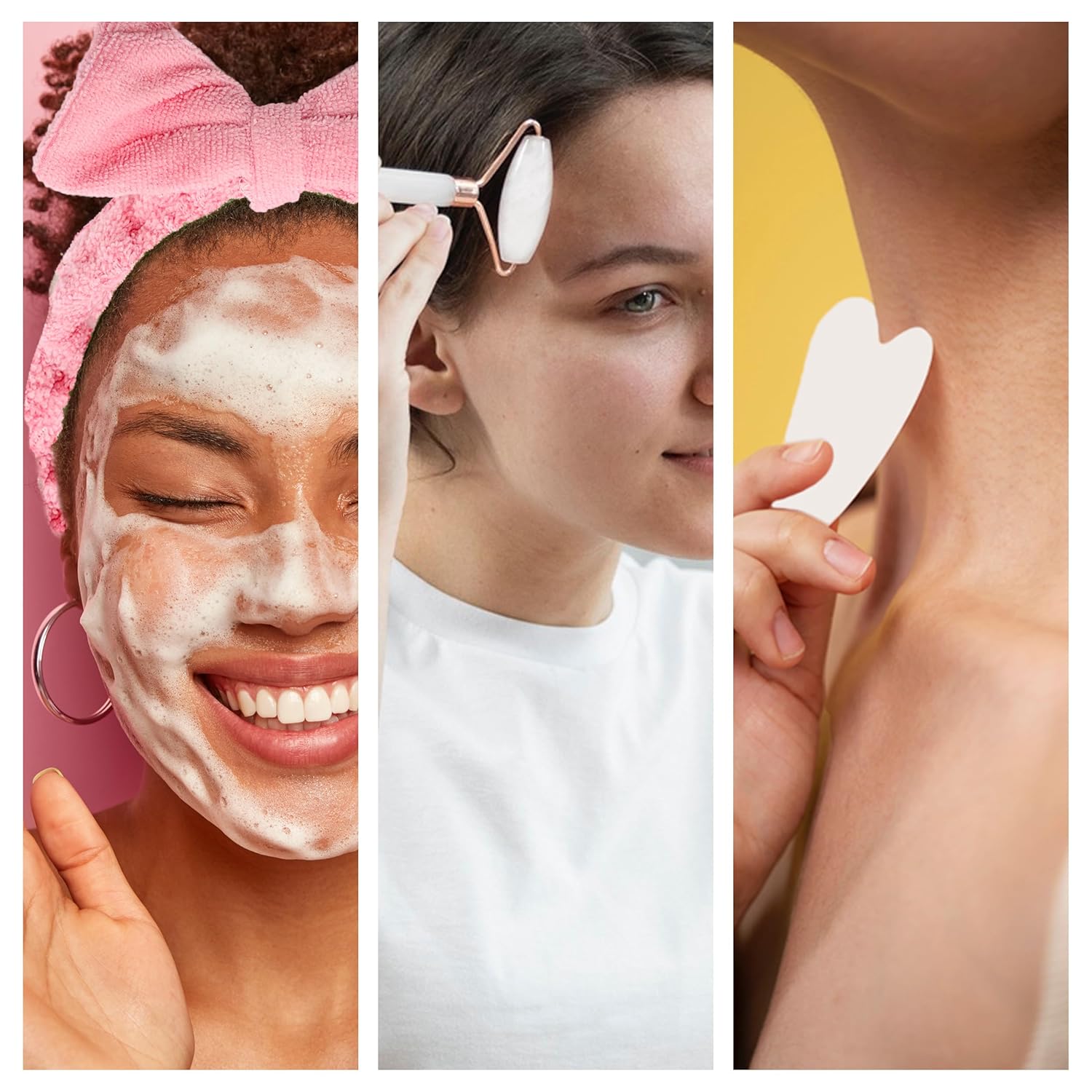 - COMPLETE DIY SPA FACIAL MASSAGE - This DIY skin care set comes with 3 pieces, 1 gua sha, 1 jade roller, and 1 headband with a bow. Use with your favorite oils and serums to promote health & beauty!