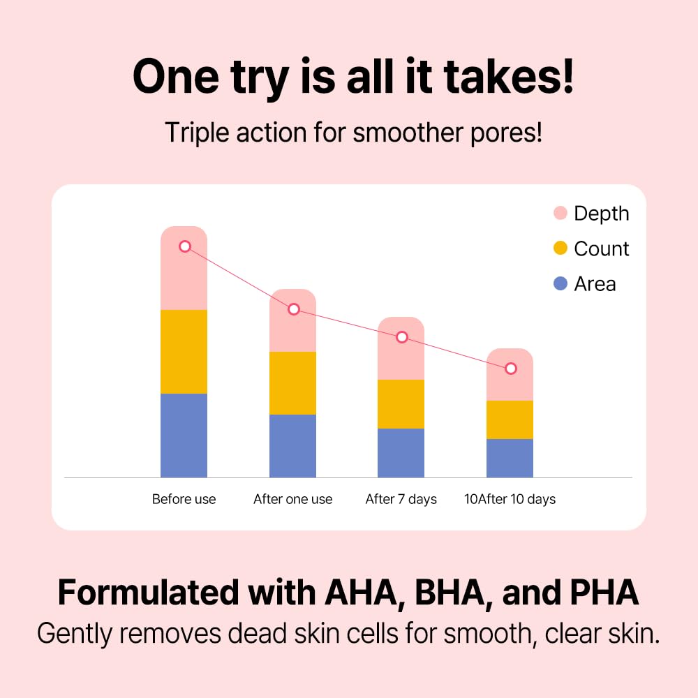 - Triple Exfoliation Blend – Formulated with AHA, BHA, and PHA to promote gentle skin renewal, unclog pores, and refine texture, leaving skin looking fresh and youthful.