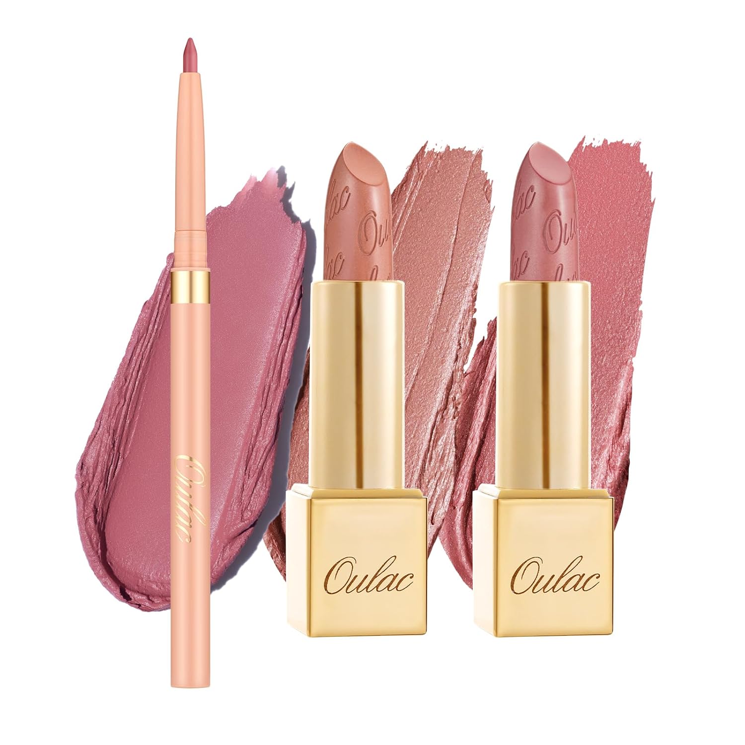 Oulac Lipstick & Lipliner Set 3PCS High Impact Lipcolor with Moisturizing Formula, Vegan Beauty, Full-Coverage Lip Color, Gift Lipstick for Women, LL01+07+13