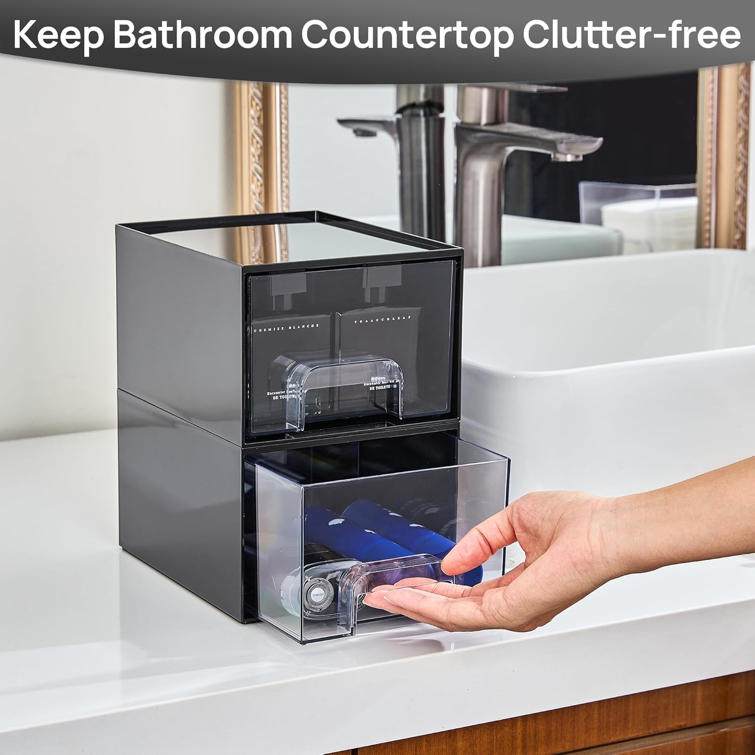 Vtopmart Black Stackable Storage Drawers,4.4‘’ Tall Cologne Organizer for Men,Plastic Containers for Vanity, Dresser,Office Desk,Bathroom Countertop Organization,Ideal for Room Decor,Gifts for Men