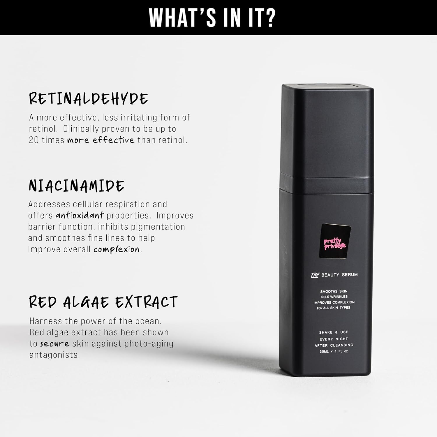 Pretty Privilege - THE Beauty Serum - 0.1% Retinal Serum With Niacinamide & Red Algae Extract. Anti Aging Skincare For Younger Looking Skin. For All Skin Types. Made in the USA.