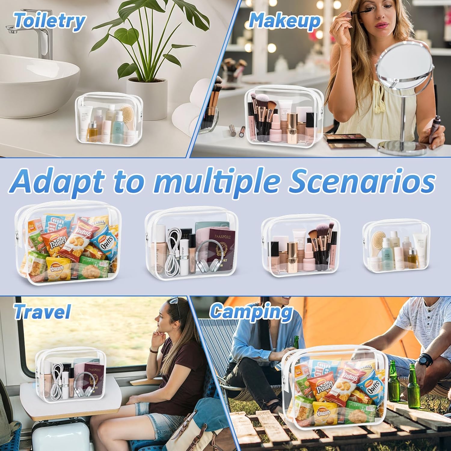 - 4 Pack Clear Makeup Bags - Satisfy Your Daily Needs: Package includes 6pcs clear cosmetic cags with Zipper. Sufficient quantity and various sizes can meet your daily needs.