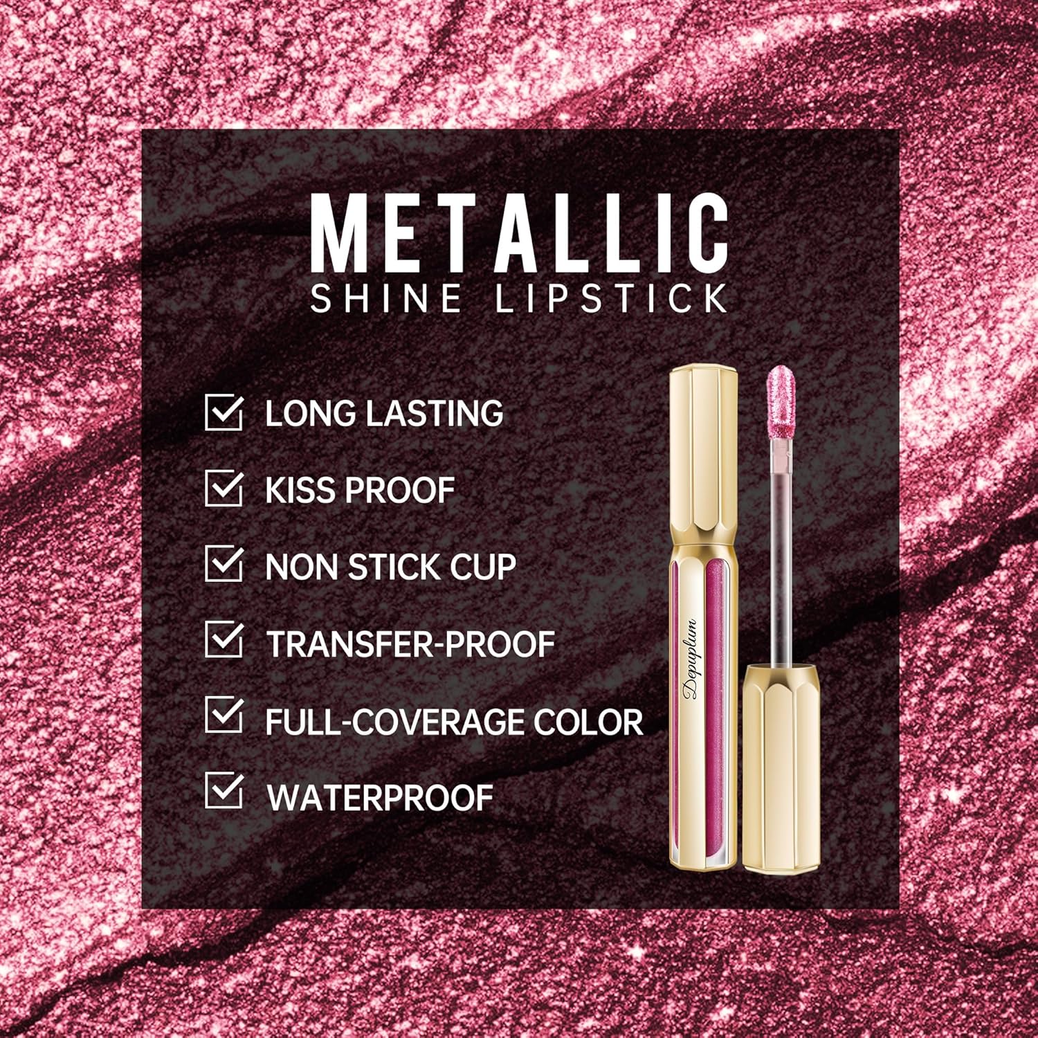 - METAL LIQUID LIPSTICK WITH DUAL EFFECTS: Depuplum metallic shine lipstick delivers a lightweight and pigmented finish, creates two effects: a thin layer for shimmer payoff and a thick layer for bold metallic style