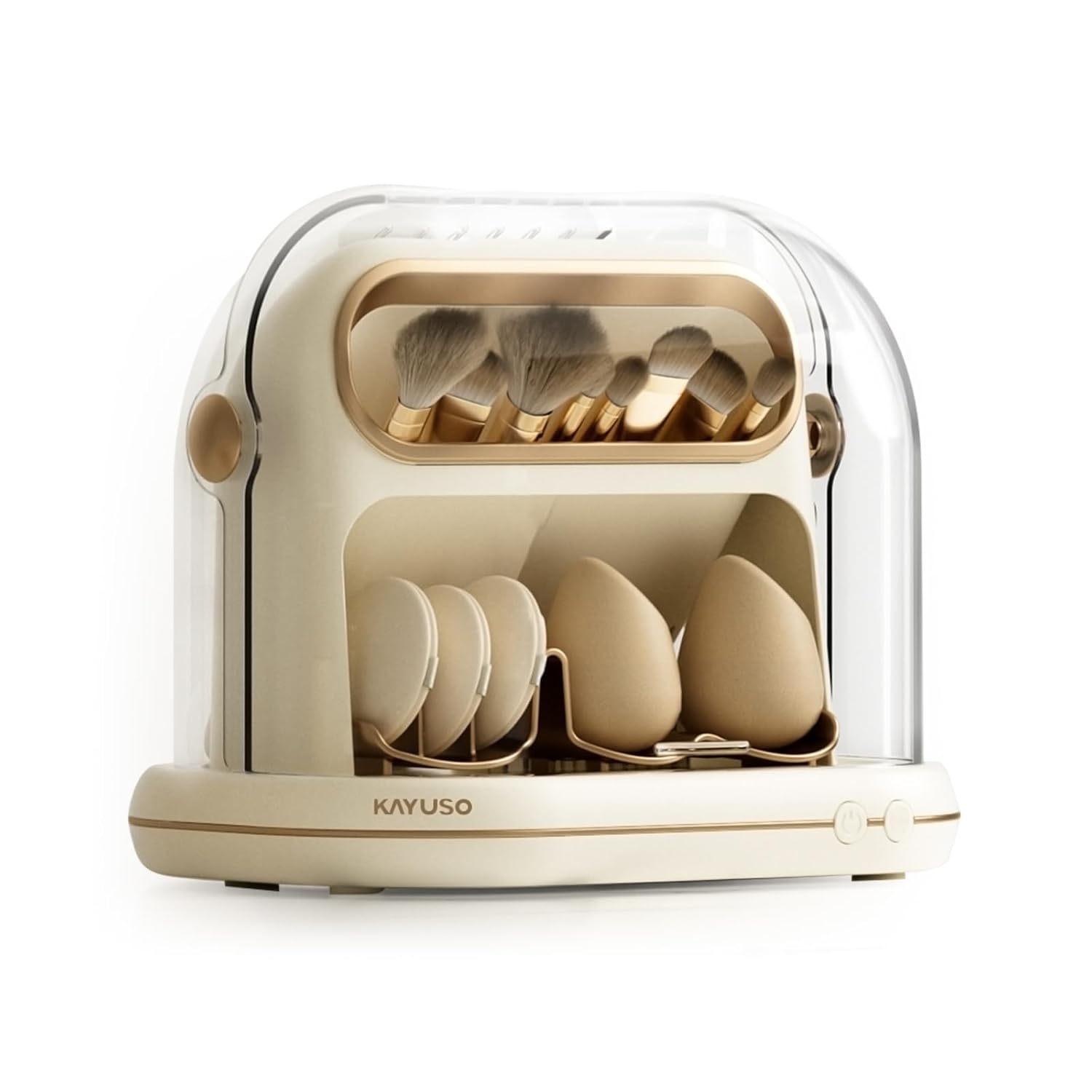 KAYUSO Electric Makeup Brush Dryer Machine, 3 in 1 Automatic Makeup Brush Dryer and Storage with Cover, Timed Cleaning Tool for Most Size Brushes and Sponges