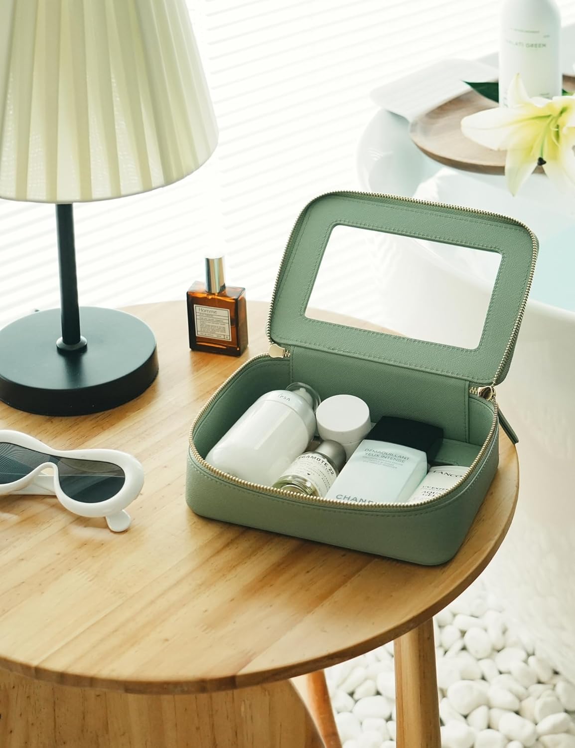 • [Compact and Portable] – The green travel make up bag measures 8.3'' x 6.1'' x 2.4'' (21cm x 15.5cm x 6cm), designed to offer a compact and travel-friendly solution for organizing your makeup and toiletry essentials. It can be easily fit into a variety of bags, whether you prefer to carry it in a handbag, tote, or travel luggage.