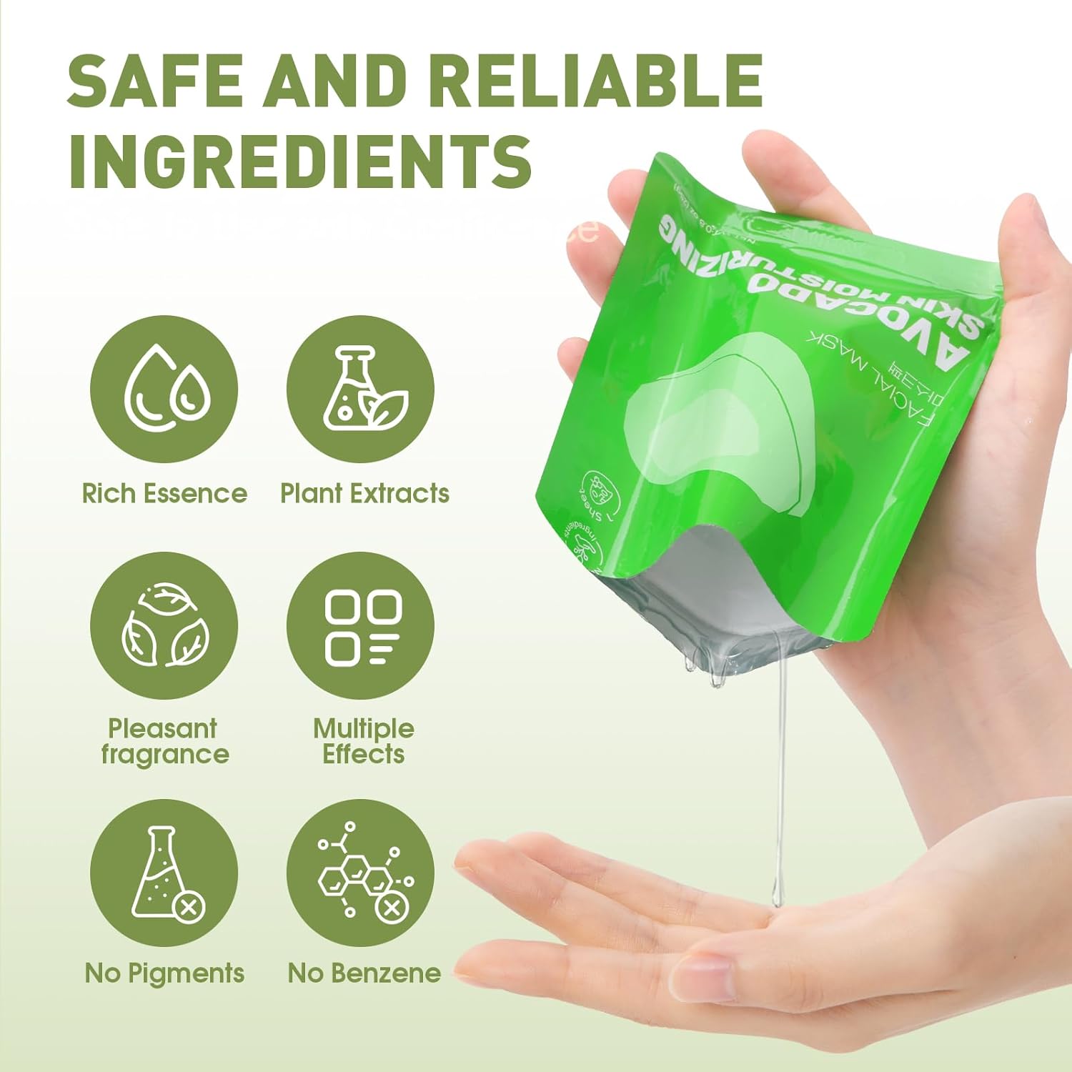 - 【How to Use Face Masks】1.Take out the facial mask,remove the covering film on one side,2.Clean your face and cover your face,3.Relax and leave on skin for 15-20 minutes,4.Remove the mask,gently massage the face and wash with water