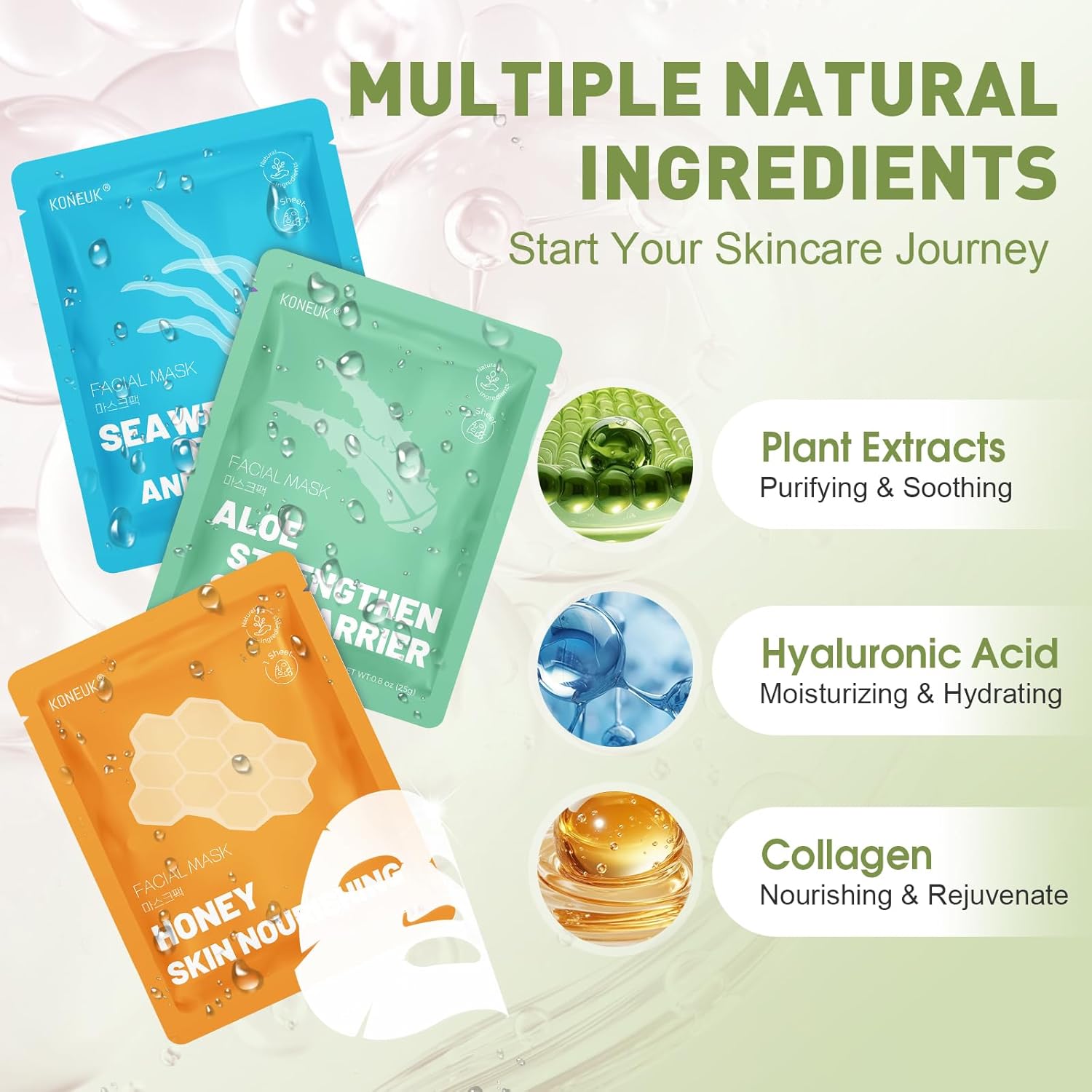 - 【Suitable for All Skin Types】No matter if your skin is oily,dry,or sensitive,this collagen face masks set can meet all your needs.The skin absorbs the rich collagen essence,hydrating and moisturizing while improving rough skin,nourish the skin,and make the skin more hydrated and firm