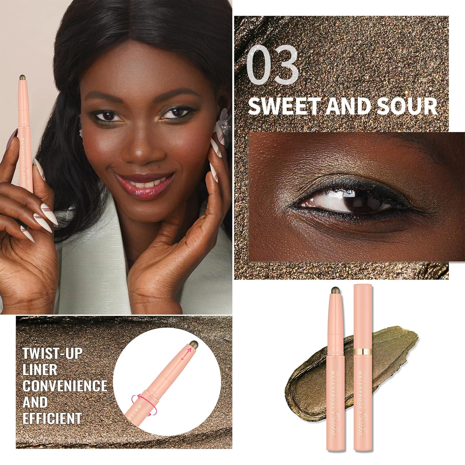 Oulac Twist-Up Eyeshadow Pencil – Waterproof Creamy Stick Blendable Texture, Vegan & Cruelty-Free Eye Makeup, 1.25g, 03 Sweet and Sour