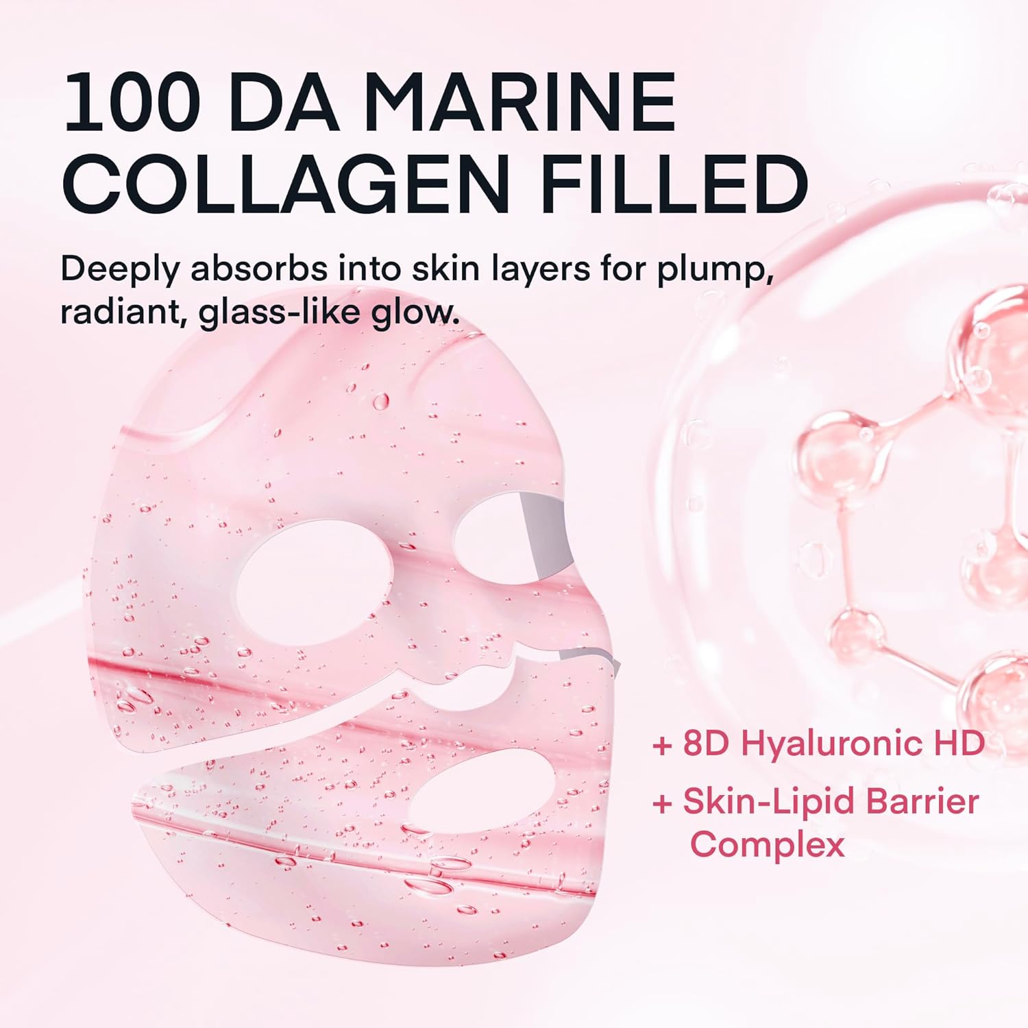 Terez & Honor Collagen Face Mask Overnight - 8 ea x 33g 100 Dalton Ultra Low Bio Collagen Gel Mask for Glass Glow Skin, Deep Hydration, Wrinkle, Fine Lines, Pore, Elasticity & Firming, Korean Skincare