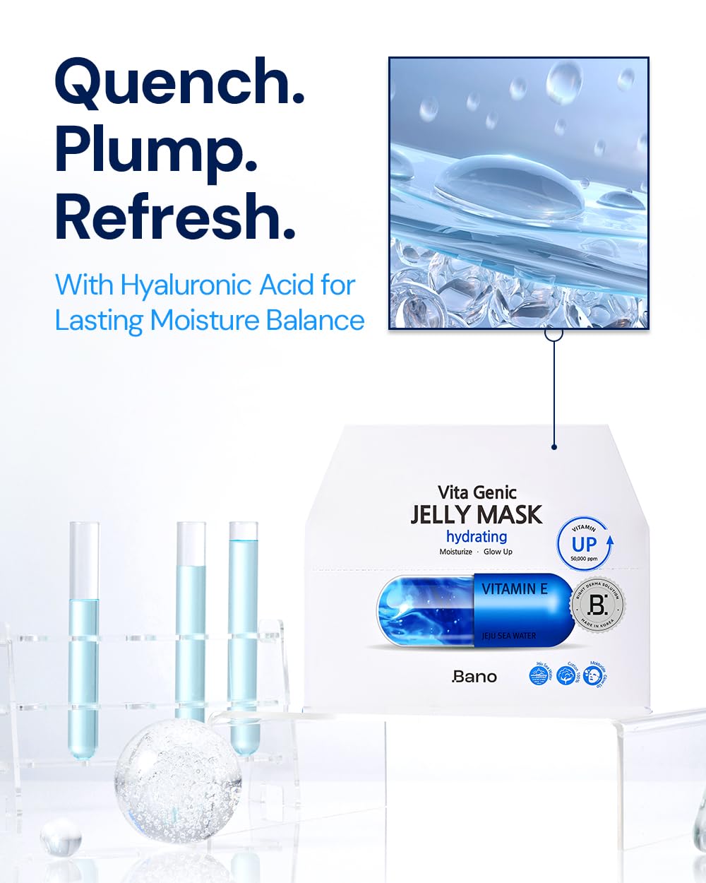 - JELLY ESSENCE & 100% COTTON SHEET: BANO's transparent jelly essence spreads smoothly and absorbs without stickiness, delivering deep moisture into the skin. A 100% cotton sheet soaked in rich jelly essence, packed with skin-loving ingredients. The sheet adheres seamlessly to the skin, enhancing absorption and maximizing the benefits of active ingredients..