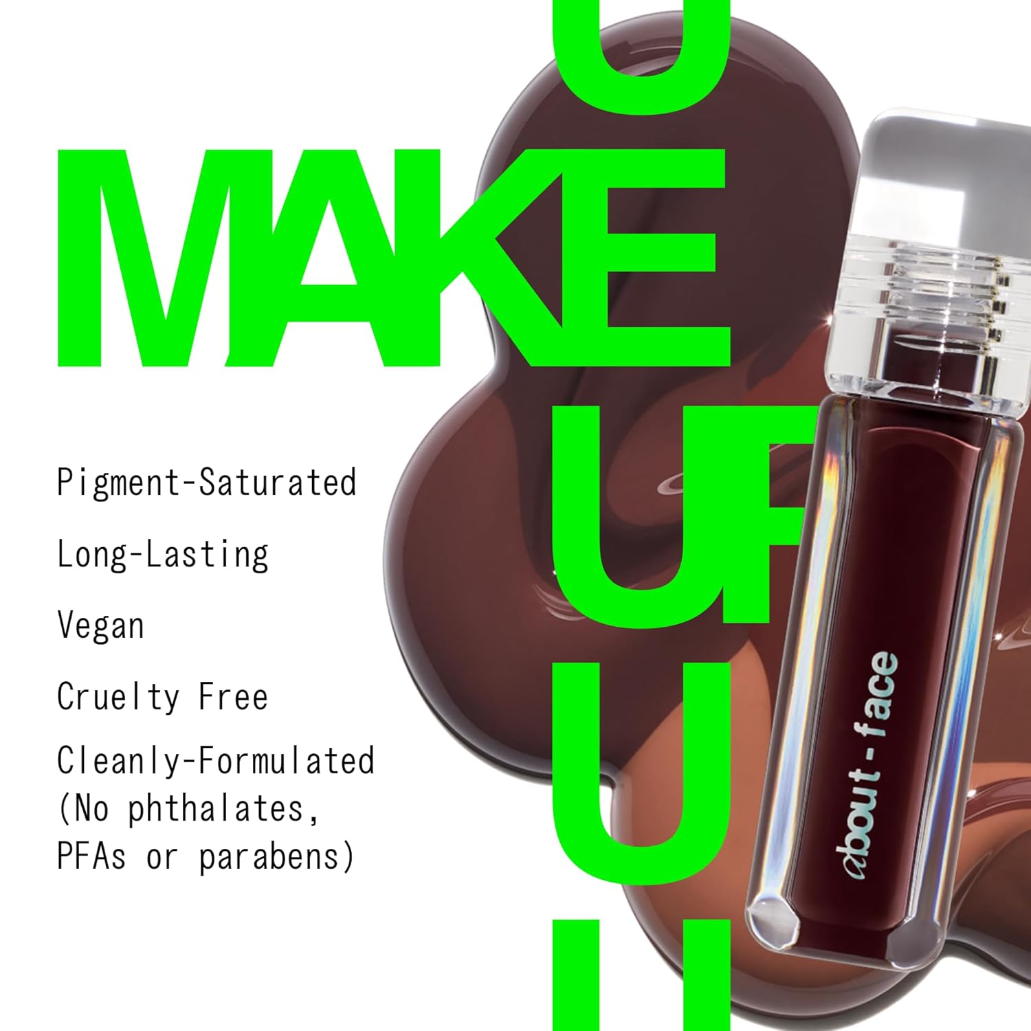 about-face Light Lock Lip Gloss Play Hooky – Non-Sticky, High-Shine Lip Oil Gloss with Coconut Oil, Peppermint & Lavender – Vegan, Cruelty-Free, Clean Beauty – 0.21 oz (Plum Brown)