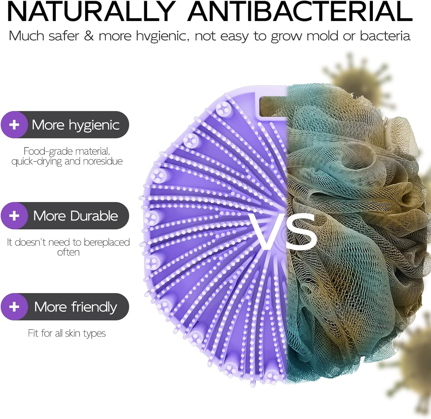 - ECO-FRIENDLY SILICONE: Crafted from safe and durable food-grade silicone, our body bath scrubber is gentle on your skin while still offering effective exfoliation and cleansing.