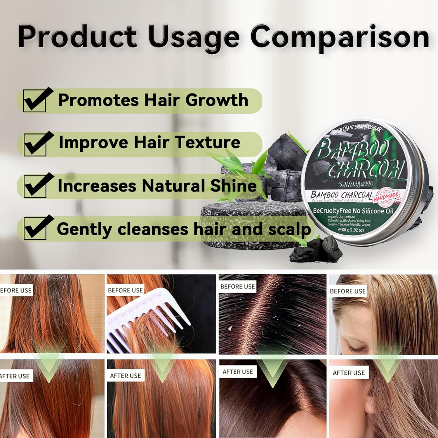 • 【Safe Ingredients】Bamboo Charcoal Shampoo Bar uses pure natural ingredients, including bamboo charcoal extract, shea butter, olive oil, coconut oil, and other ingredients. It has a mild effect and does not hurt the scalp. Therefore, you can use it with confidence even if you have sensitive skin.