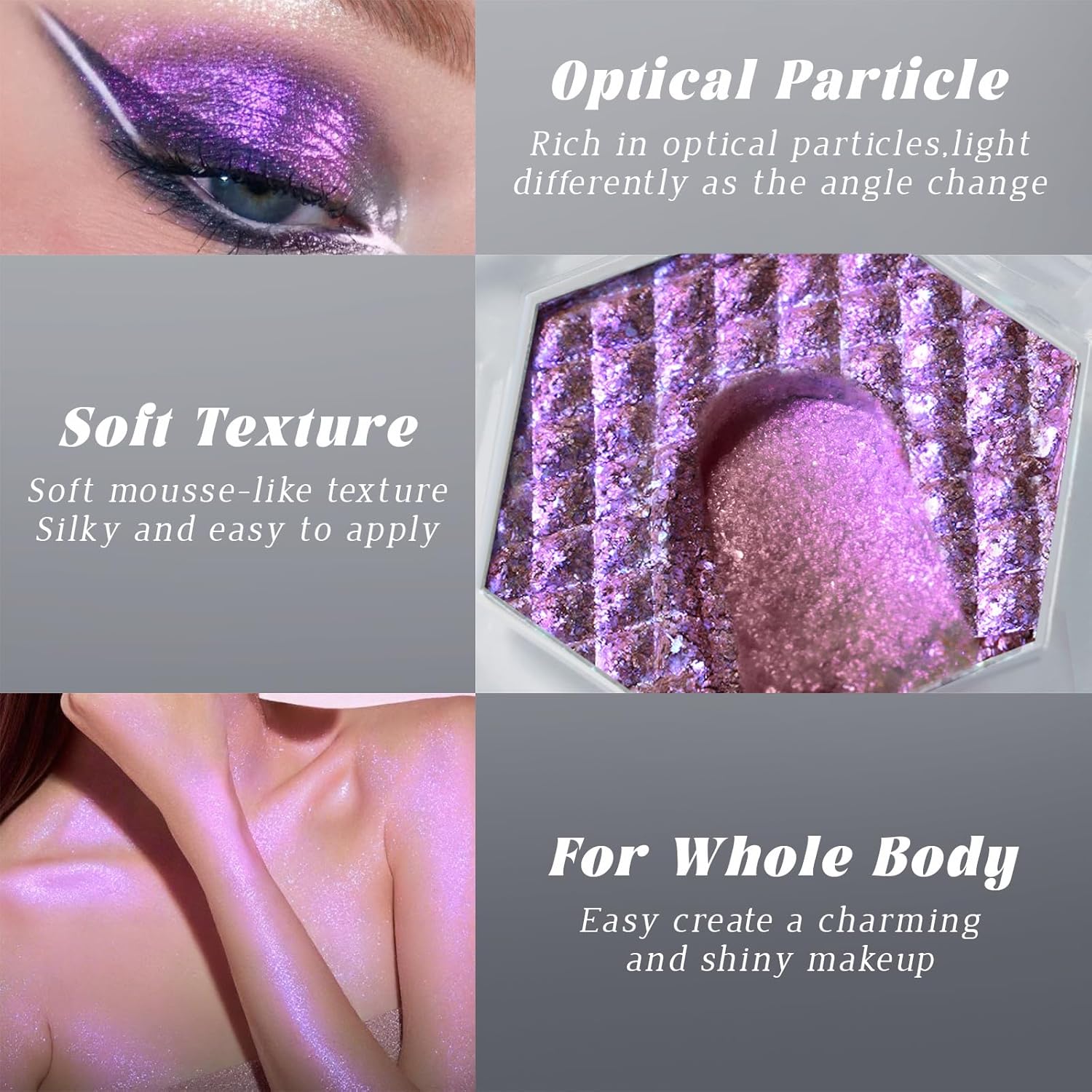 - Chameleon Mermaid Eyeshadow: Intense Color Shifting, Different light and angle will present different colors, holographic glitter eyeshadow will bring you special eye makeup