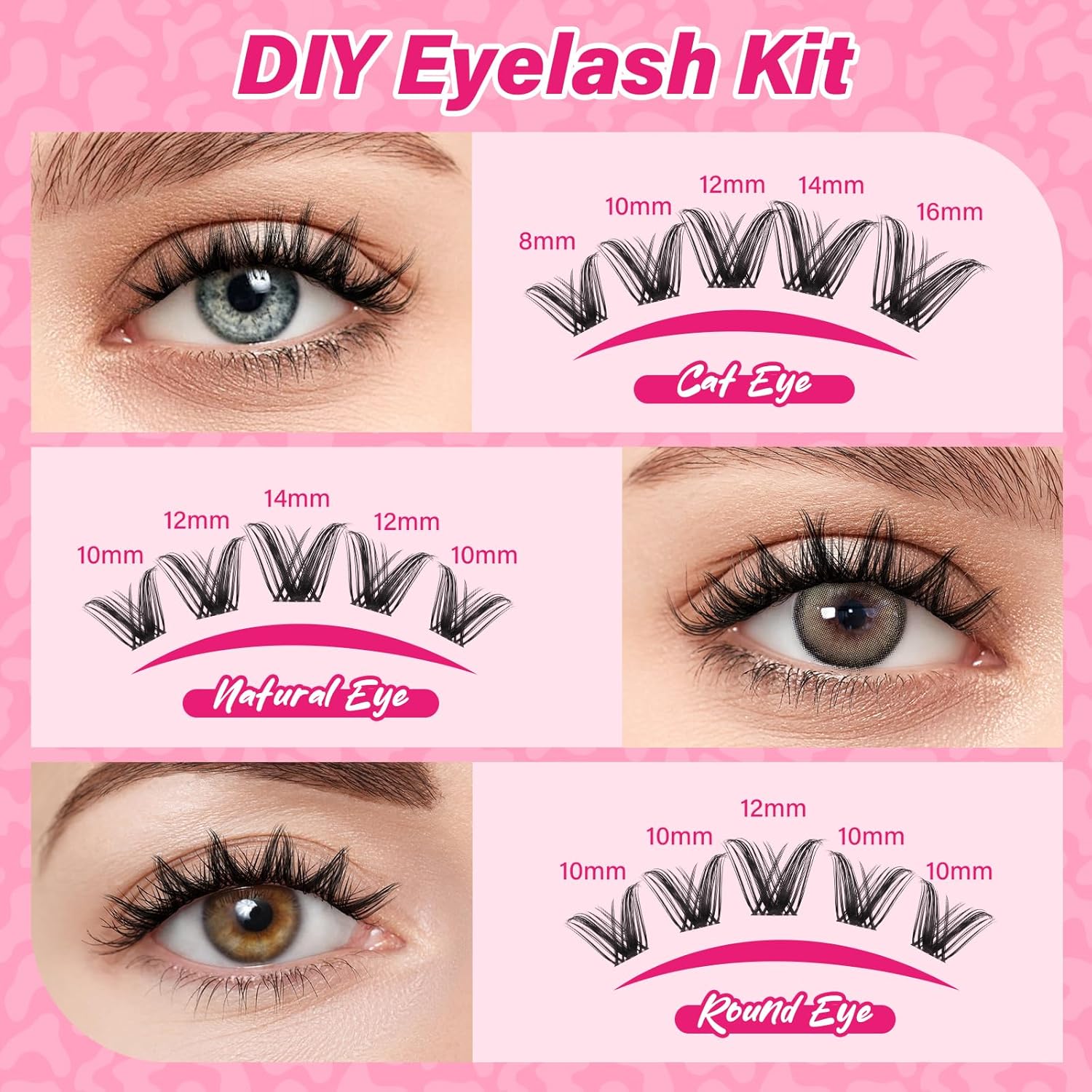 - Long-lasting Lash Clusters& Mild formula: the ingredients are safe and mild, no irritating ingredients, suitable for all skin types, even sensitive skin can be used without fear. The durable curl individual lashes are long-lasting and not easy fall apart, ensuring your wispy eyelash clusters look fabulous from morning to night, giving you confidence in your captivating gaze.