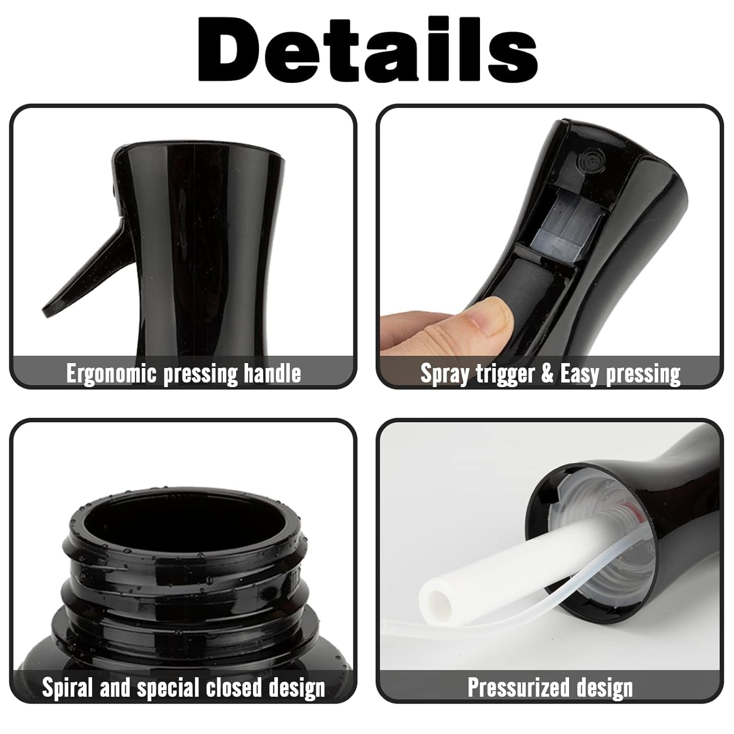 - High Quality: The continuous mist spray bottle is made of quality PET material with advanced technology, strong and not easily dented, durable and refillable. BPA-free, no smell, no leakage, and refillable. If anything goes wrong with your continuous spray bottle, please contact us directly.
