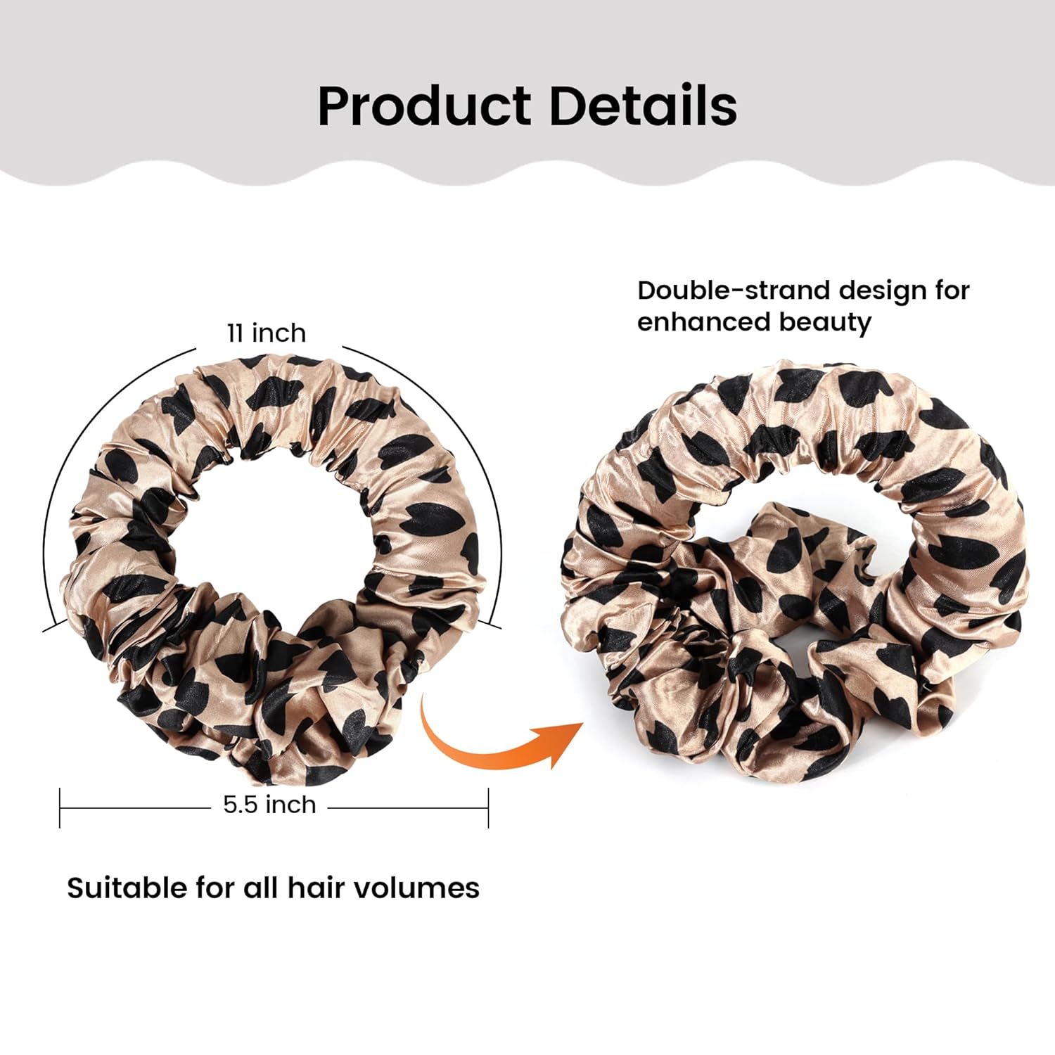 2 Pack Heatless Curling Scrunchie, Heatless Hair Curler Overnight to Sleep In, No Heat Curls for Long Hair, Soft Silk Lazy Sleep Hair Roller Headband (Black+Brown Leopard)