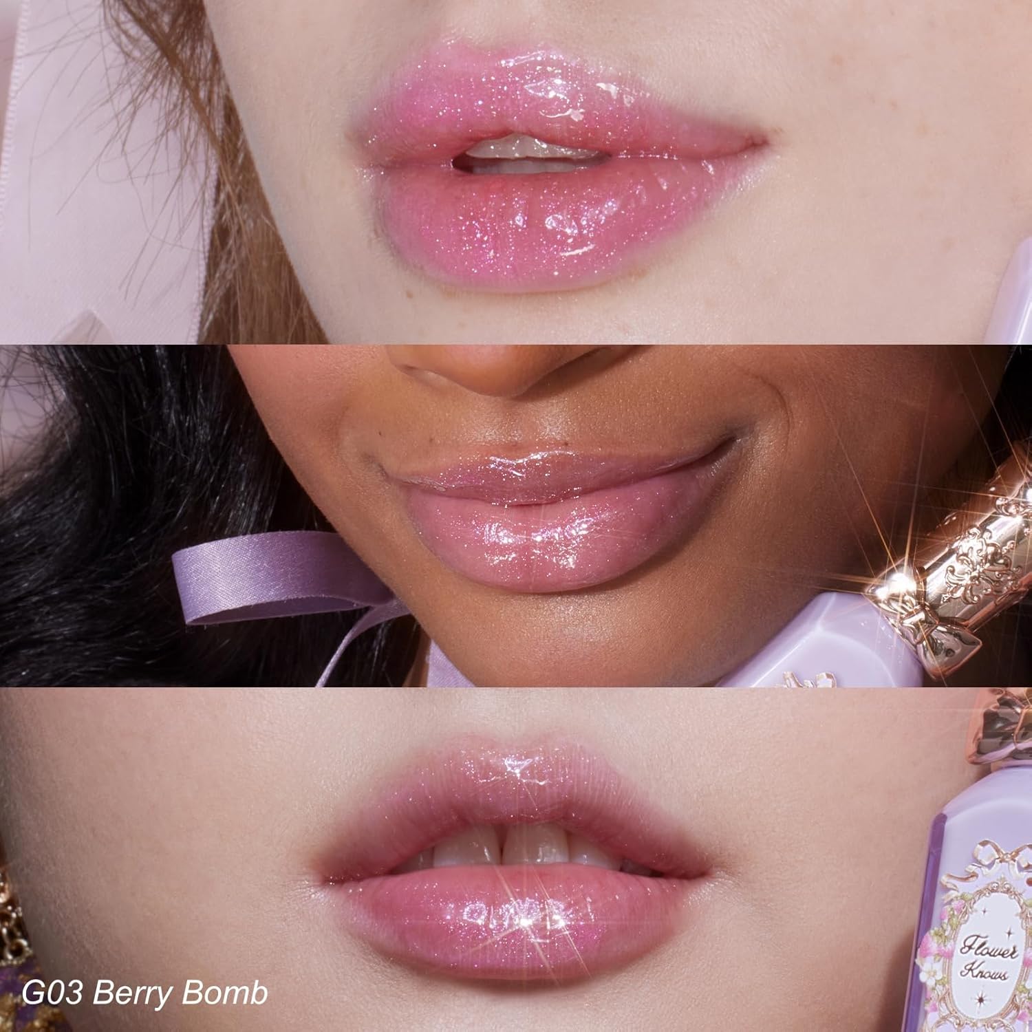 • Moisturizing Tinted Plumping Lip Gloss:Experience beautifully fuller lips with Flower Knows Violet Strawberry Rococo Glowy Lip Gloss.This luscious,non-sticky formula offers a transparent, jelly-like finish that enhances your natural beauty